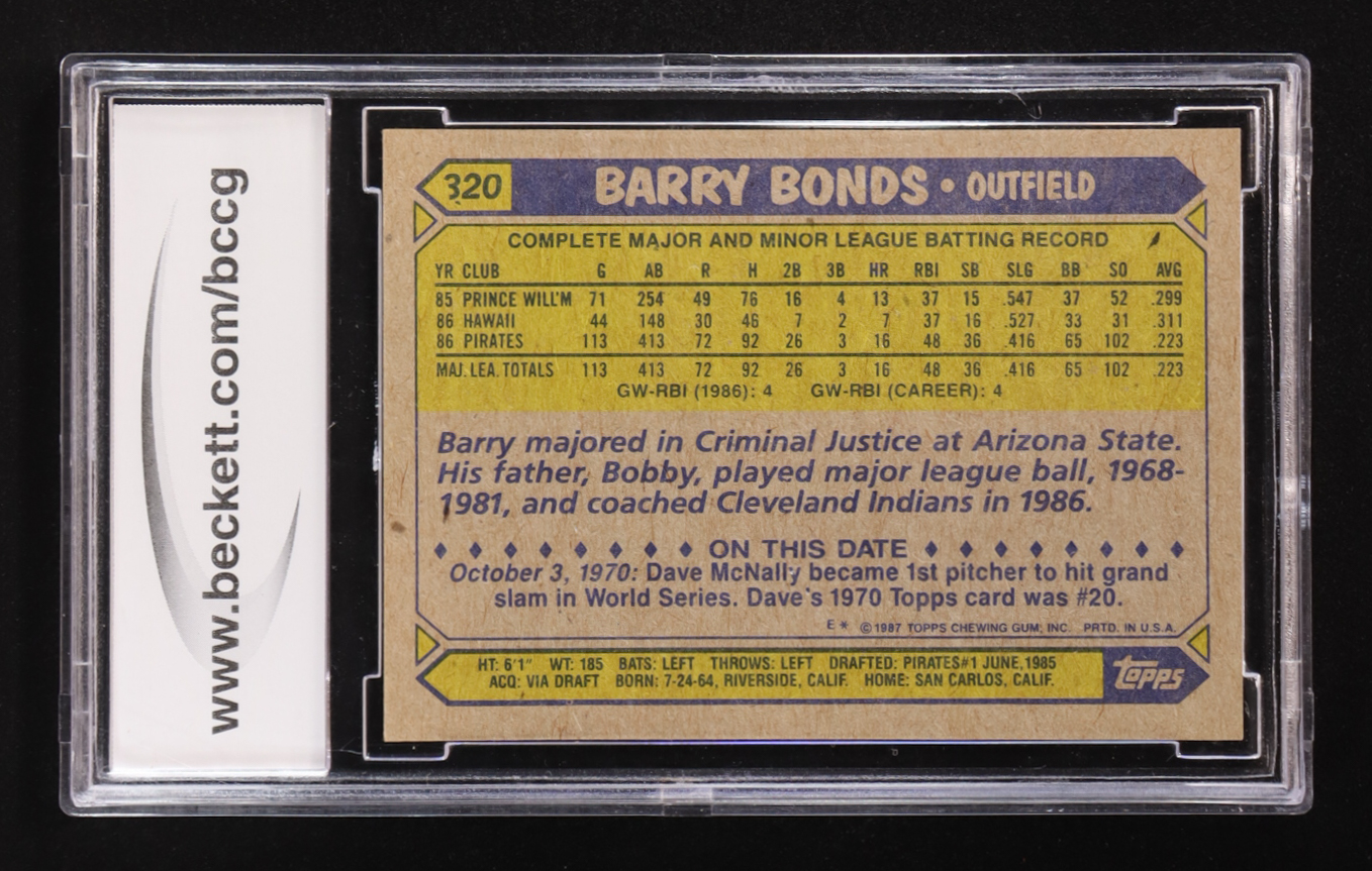 Barry Bonds 1987 Topps #320 RC (BCCG 10)