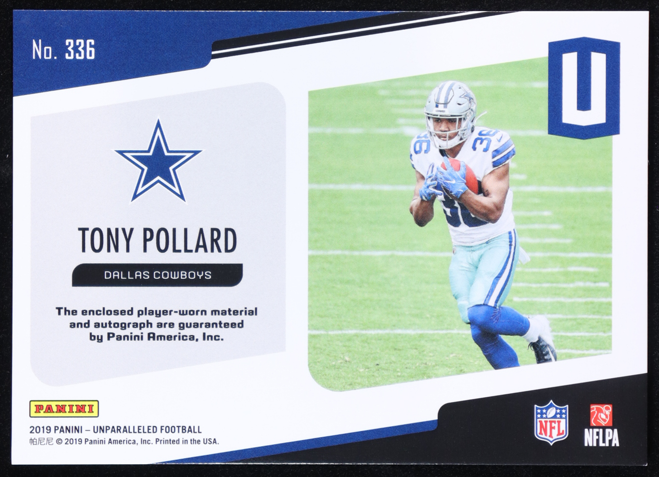 Tony Pollard 2019 Panini Unparalleled Autographs Player-Worn Jsy #336