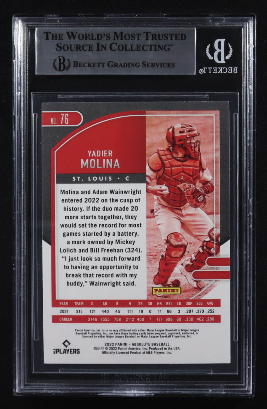 Yadier Molina Signed 2022 Absolute #76 (BGS)