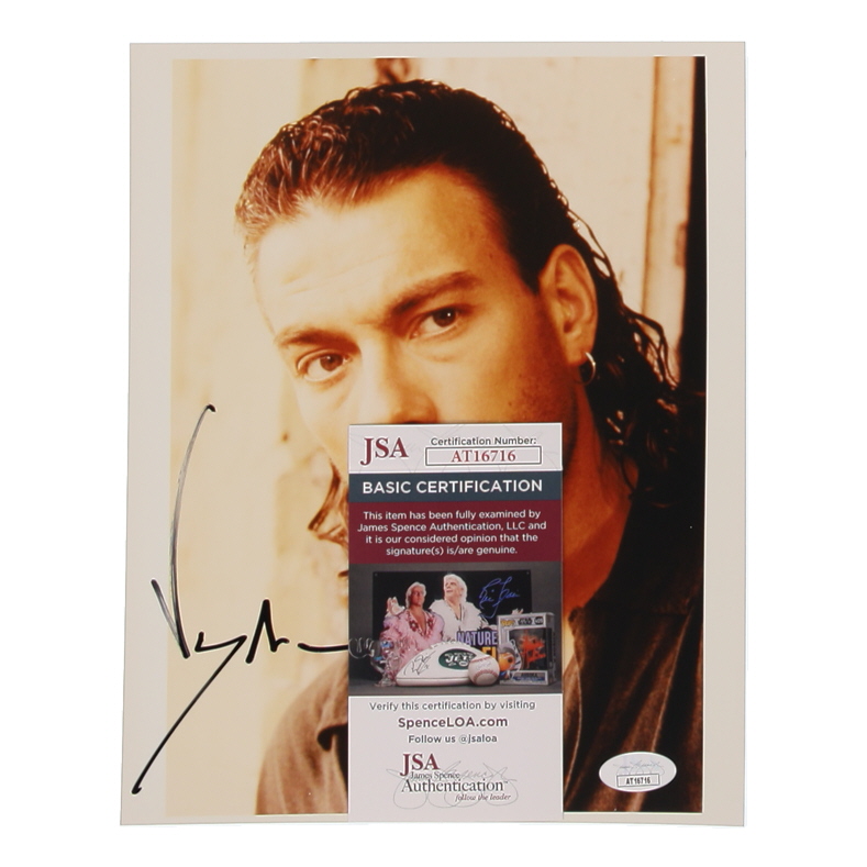 Photograph measures approximately 8" x 10" in size. Hand-signed by Jean-Claude Van Damme.
