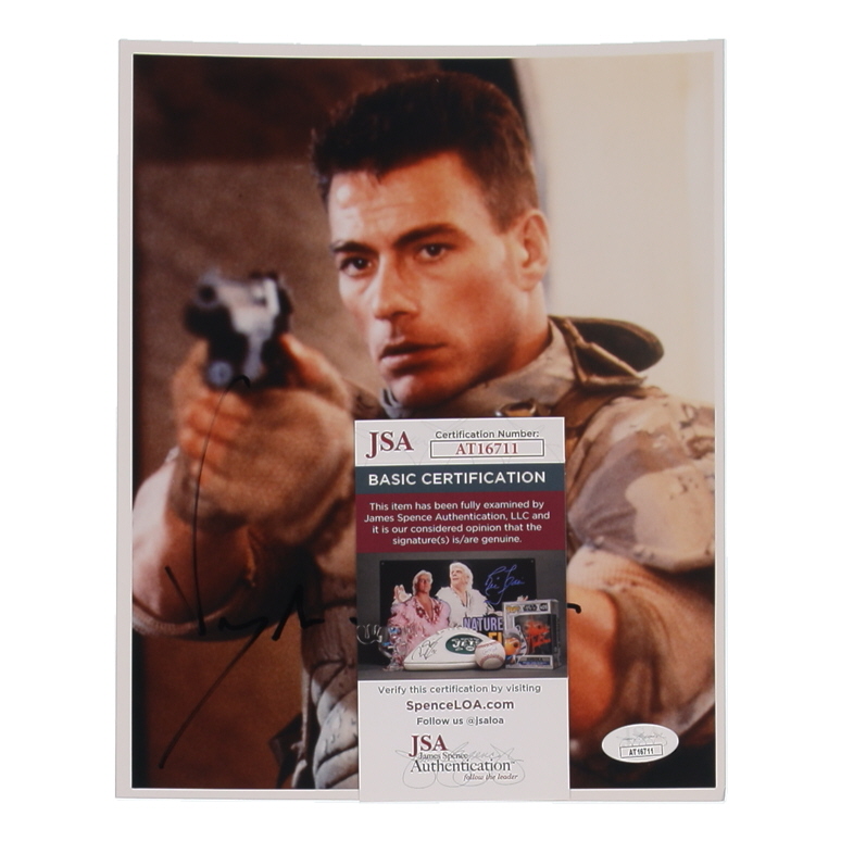 Photograph measures approximately 8" x 10" in size. Hand-signed by Jean-Claude Van Damme.