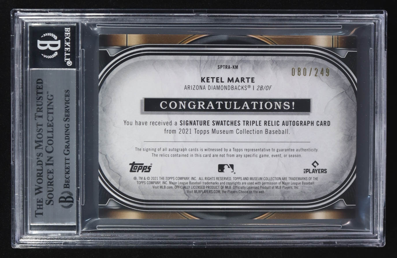 Ketel Marte 2021 Topps Museum Collection Signature Swatches Triple Relic Autographs #SPTRA-KM #080/249 (BGS 9)