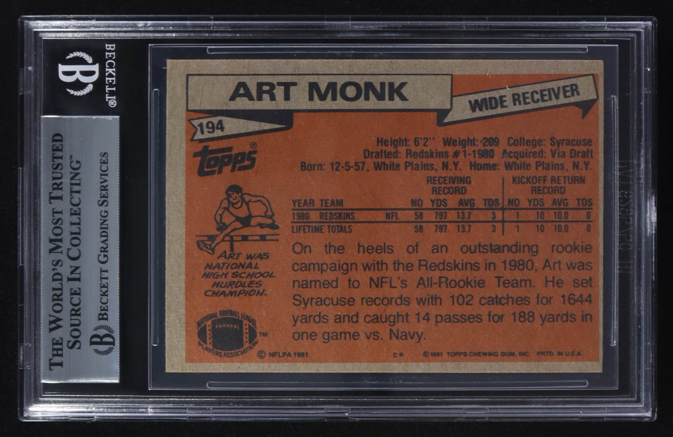 Art Monk 1981 Topps #194 RC (BGS 8)