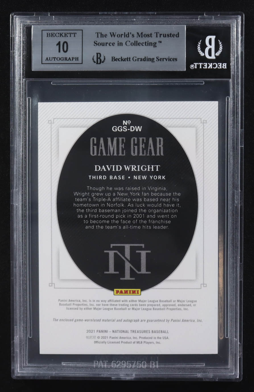 David Wright 2021 National Treasures Game Gear Triple Material Signatures #GGS-DW #03/15 (BGS 9 | Autograph Graded BGS 10)