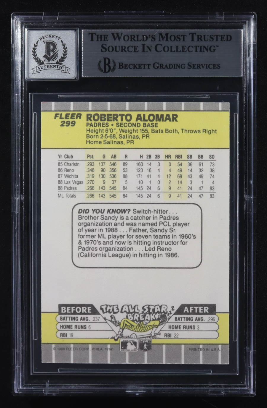 Roberto Alomar Signed 1989 Fleer #299 (BGS)