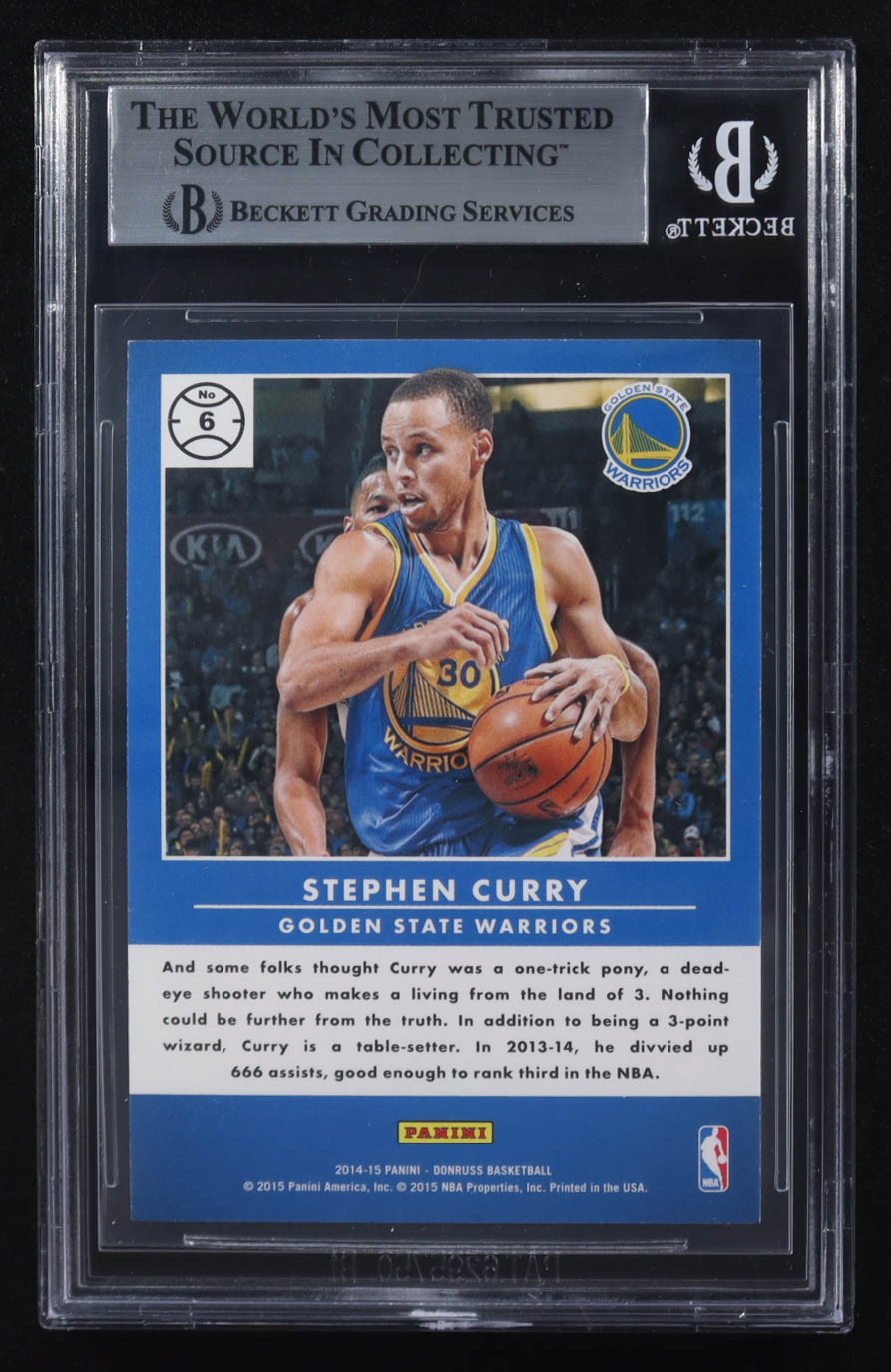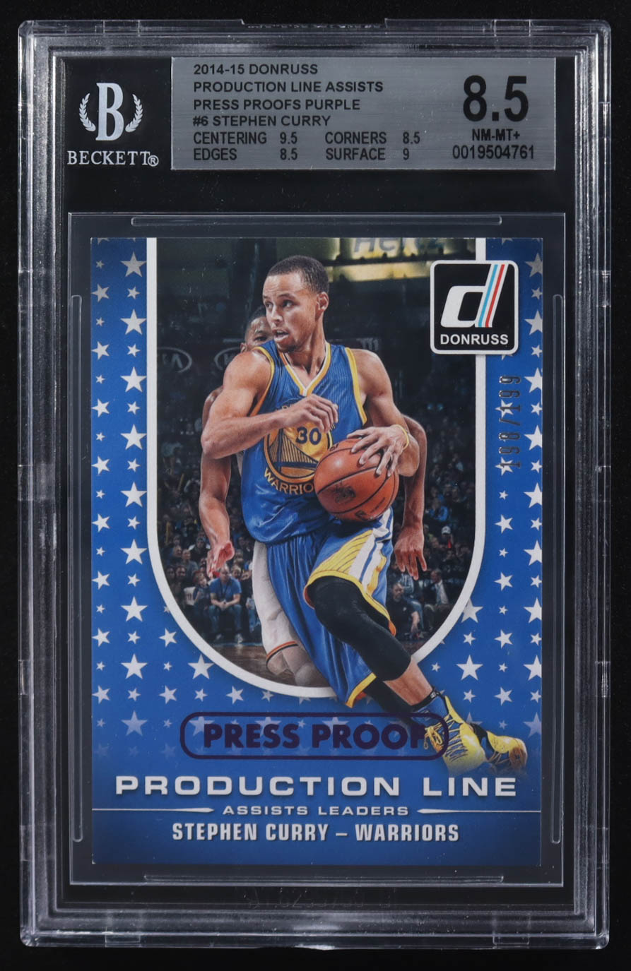 Stephen Curry 2014-15 Panini Donruss Press Proofs Purple Production Line Assists #6 #198/199 (BGS 8.5)