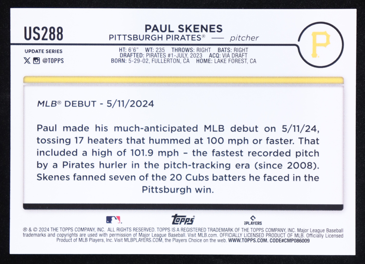 Paul Skenes 2024 Topps Update Silver Crackle Foil #US288 RC