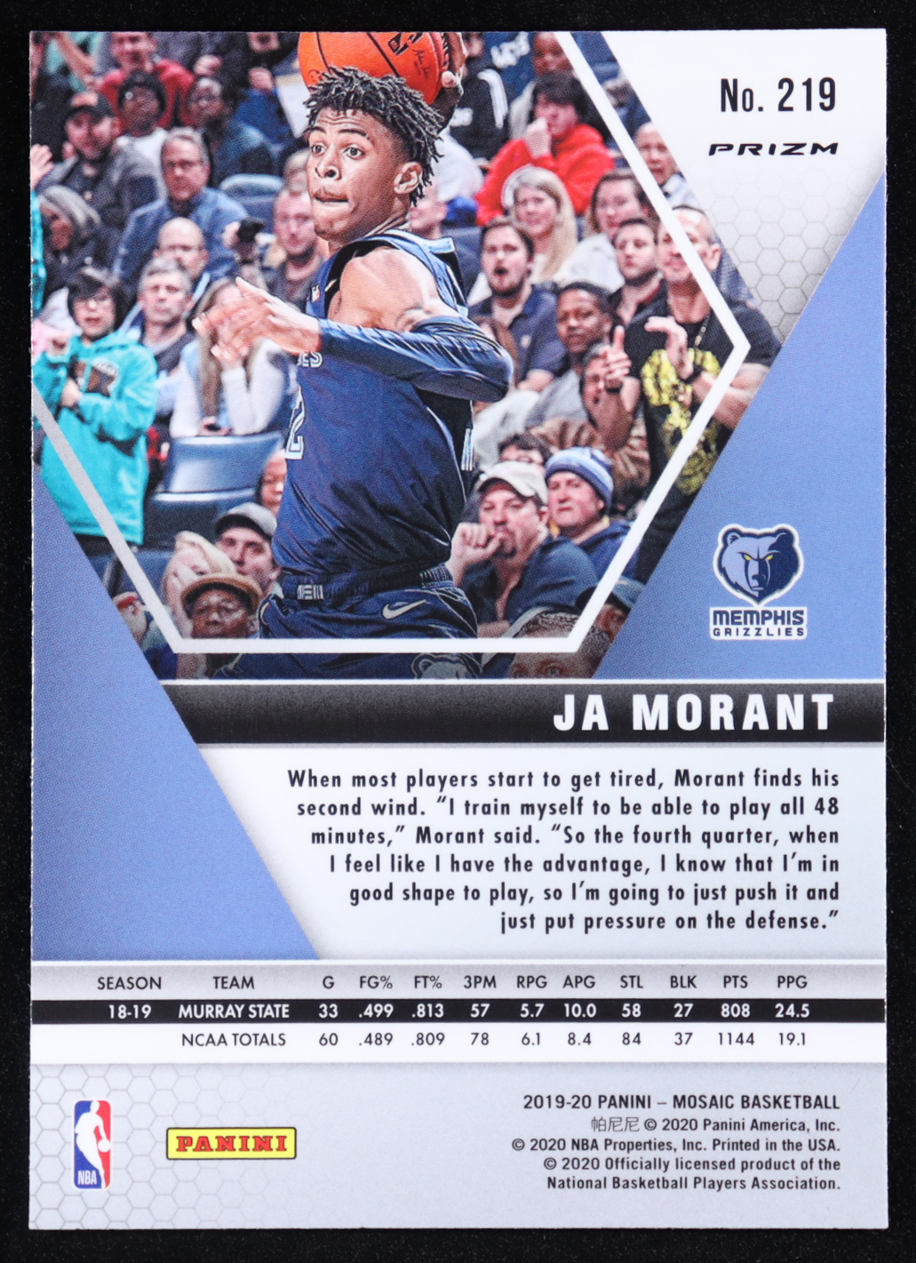 Ja Morant 2019-20 Panini Mosaic Mosaic Fast Break Silver #219 RC