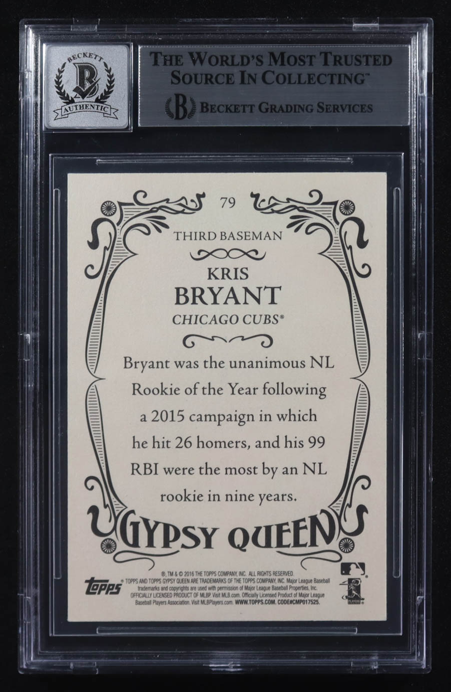 Kris Bryant Signed 2016 Topps Gypsy Queen #79A (BGS)