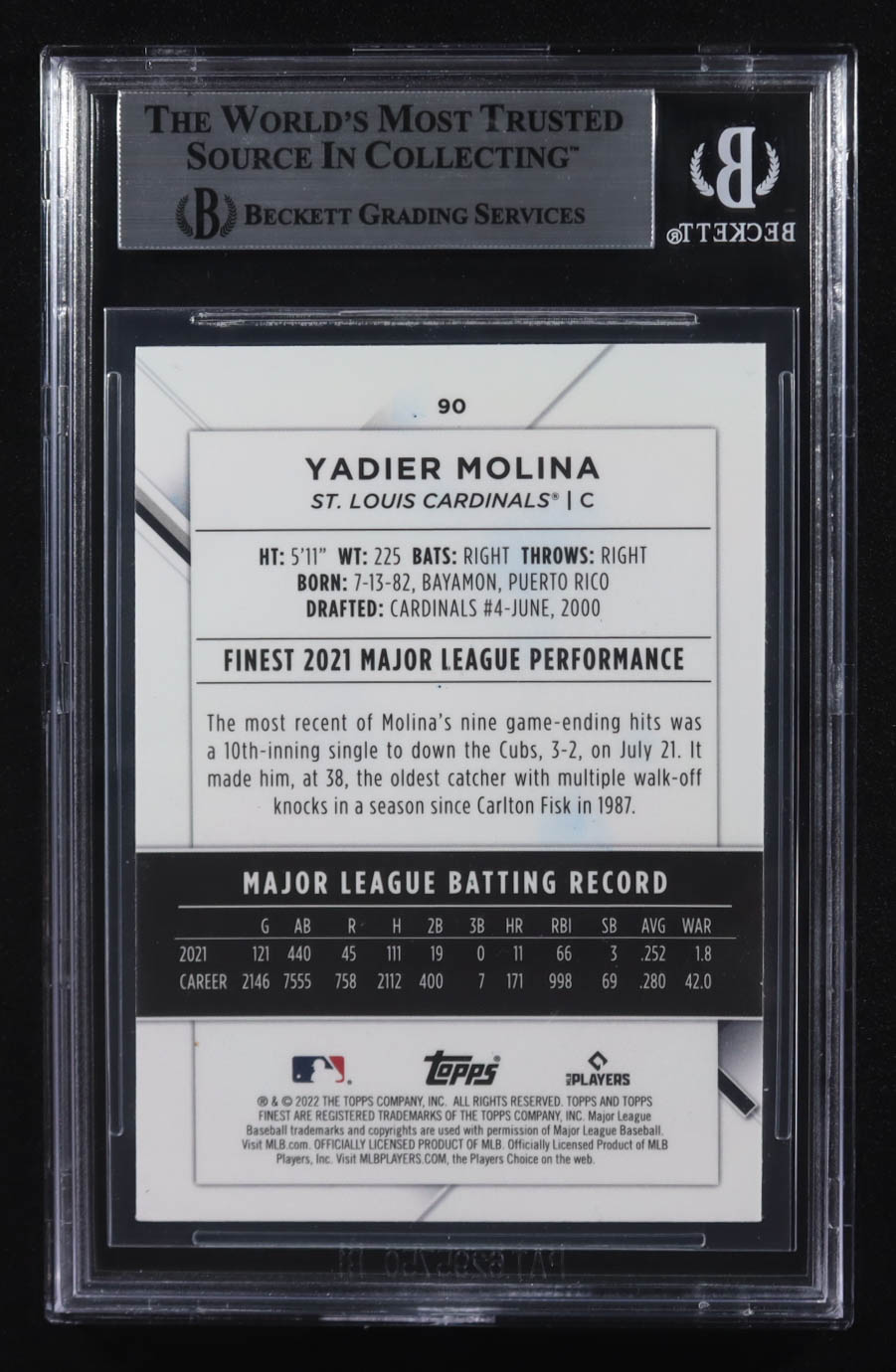 Yadier Molina Signed 2022 Finest #90 (BGS)