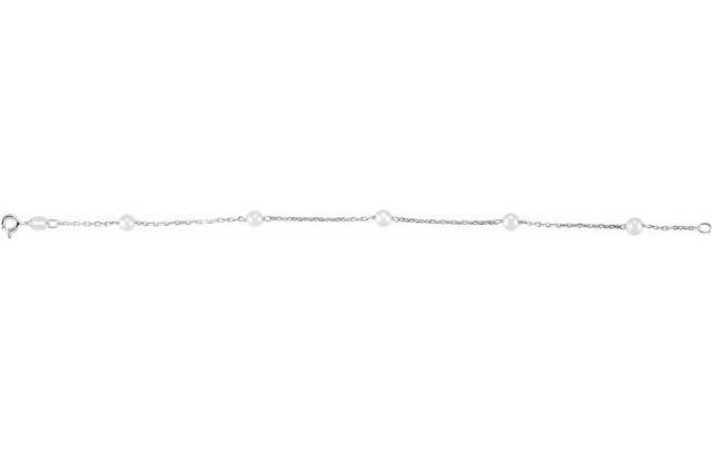 White Cultured Freshwater Pearl 5 Station Bracelet 4-4.5mm