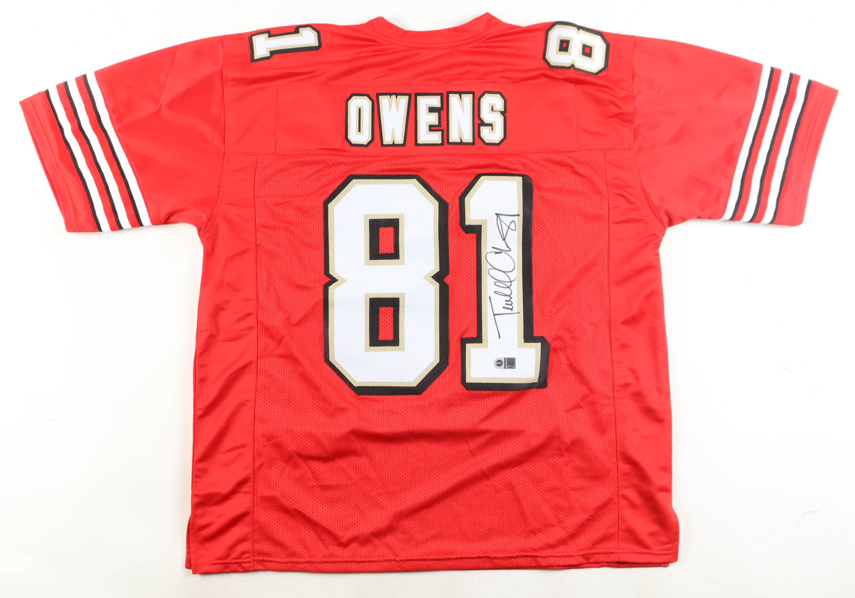 Custom jersey with everything sewn on, size XL. Hand-signed by Terrell Owens (HOF).