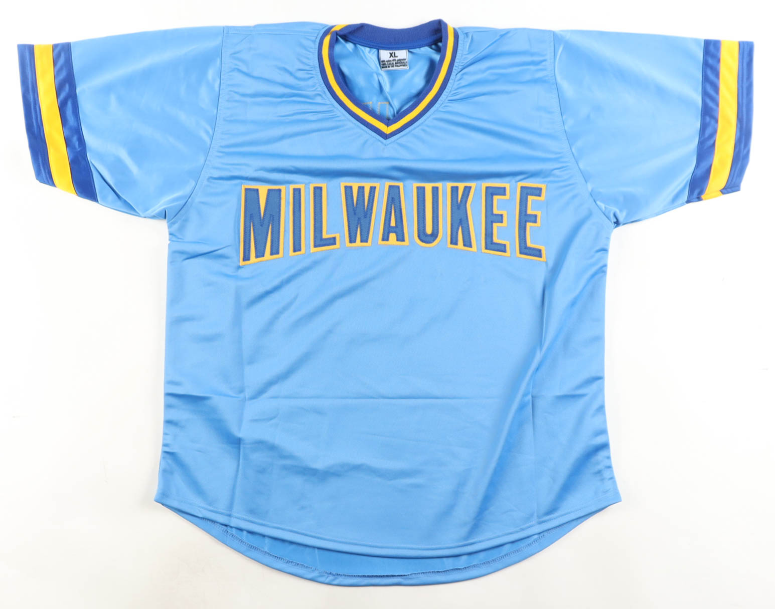 Custom jersey with everything sewn on, size XL. Hand-signed by Paul Molitor (HOF). Please note, there is a stain to the right of the reverse number.