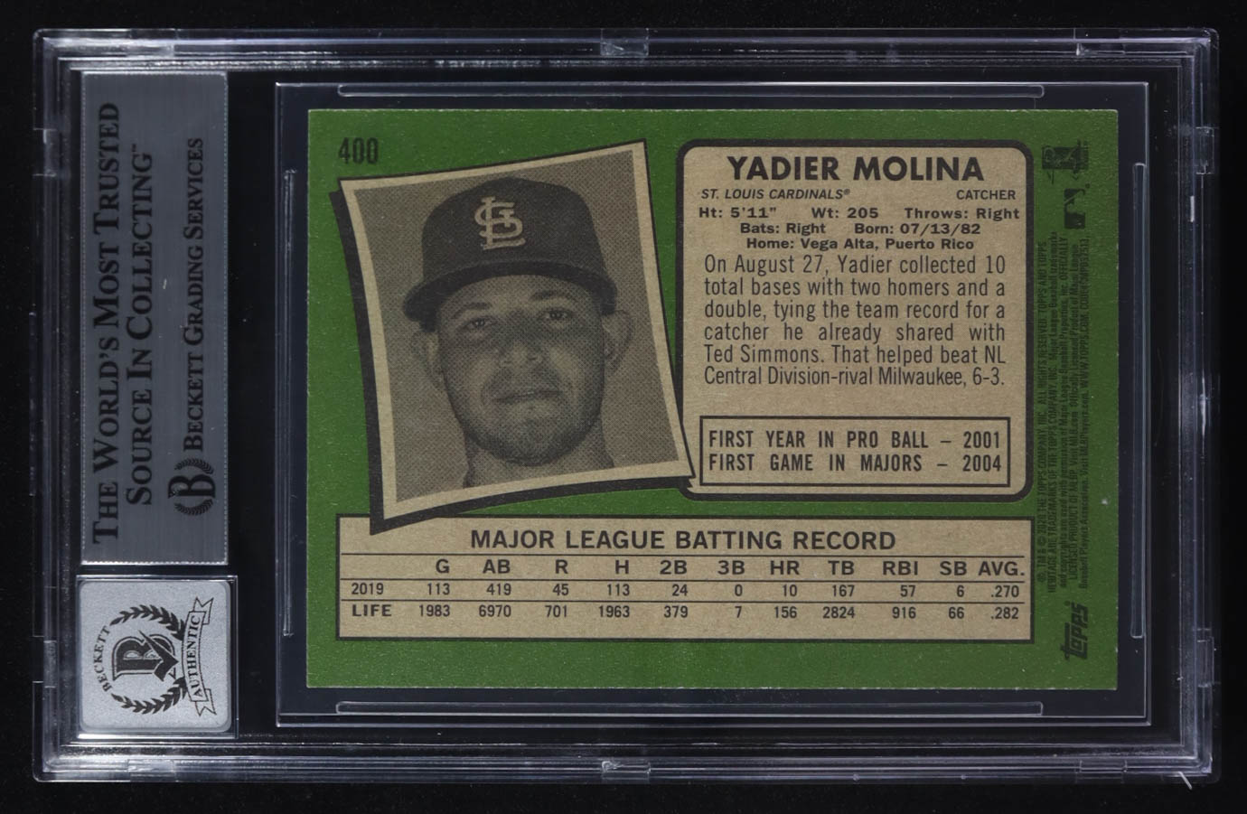 Yadier Molina Signed 2020 Topps Heritage #400 (BGS)