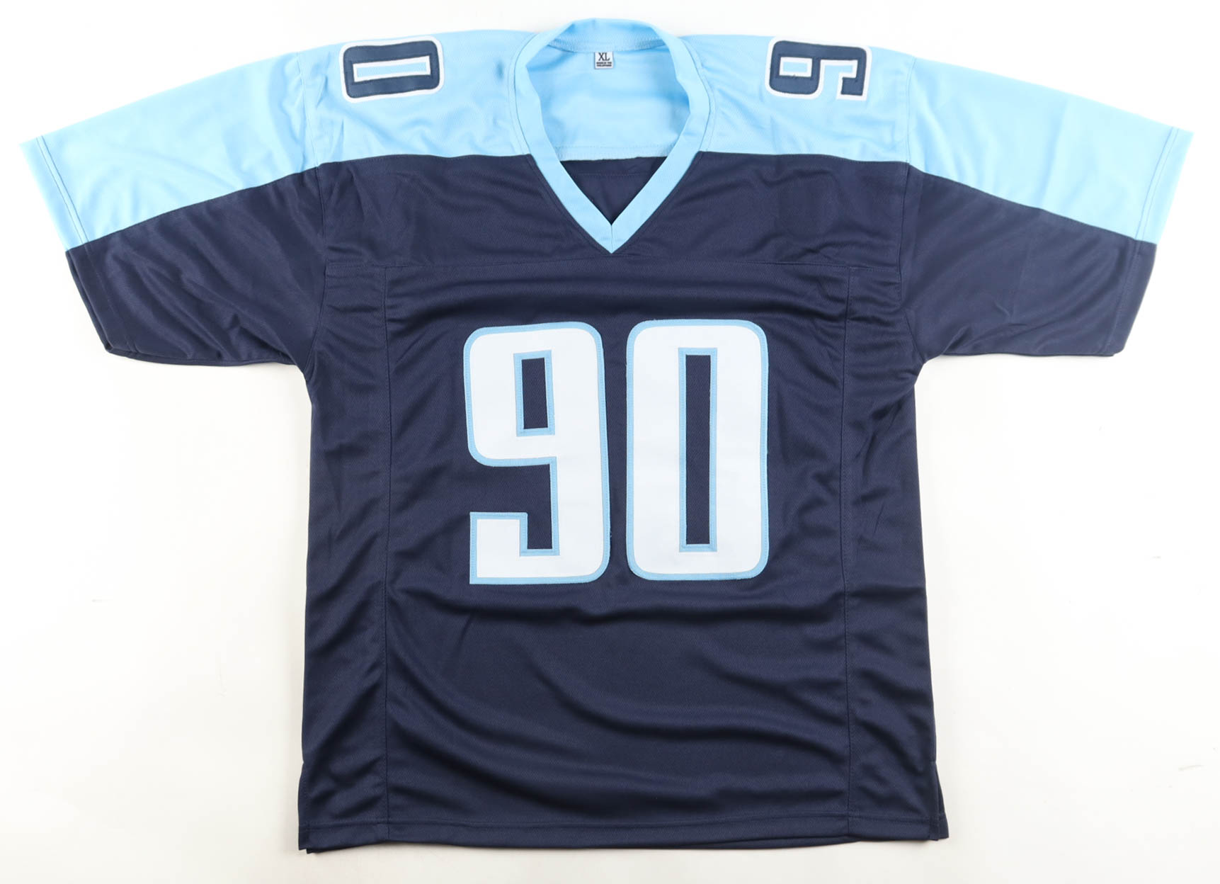 Custom jersey with everything sewn on, size XL. Hand-signed and inscribed by Jevon Kearse.
