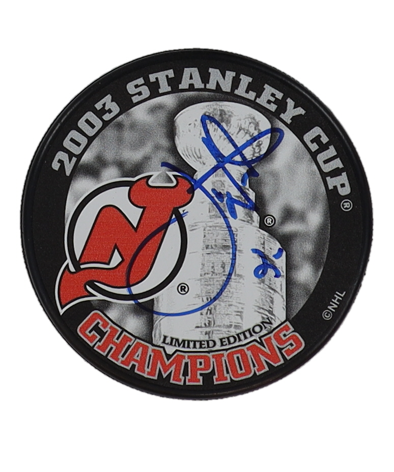 New Jersey Devils Limited Edition 2003 Stanley Cup Champions Logo Hockey Puck. Hand-signed Joe Nieuwendyk (HOF).
