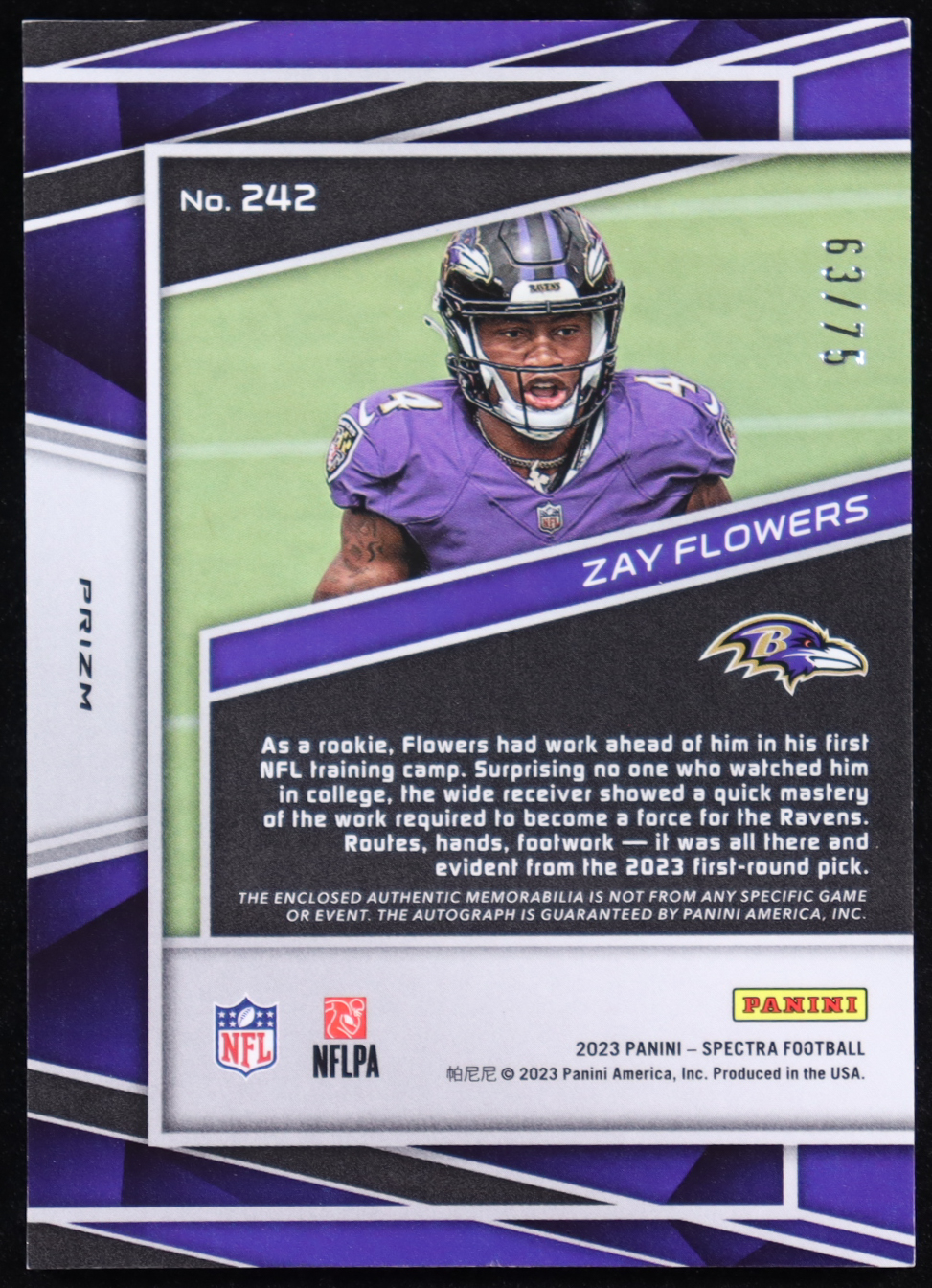 Zay Flowers 2023 Panini Spectra Celestial Jsy Autographs #242 #63/75 RC