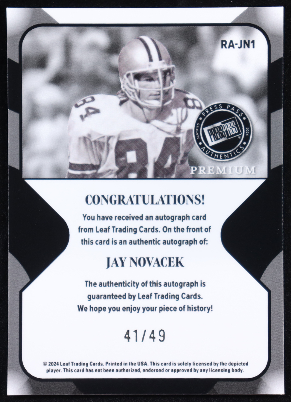 Jay Novacek 2024 Leaf Press Pass Premium #RAJN1 #41/49