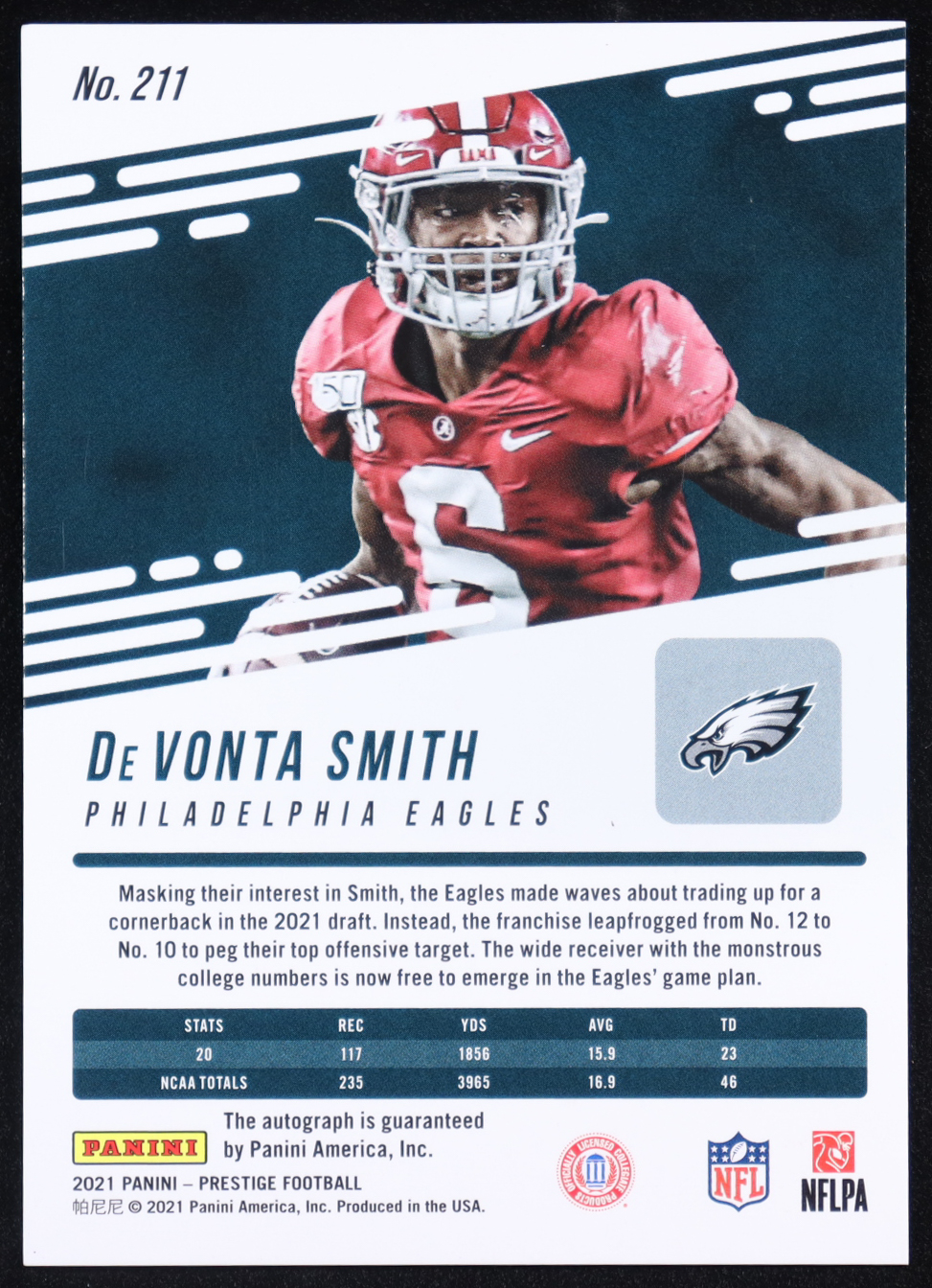 DeVonta Smith 2021 Prestige Xtra Points Signatures Premium Red #211 RC