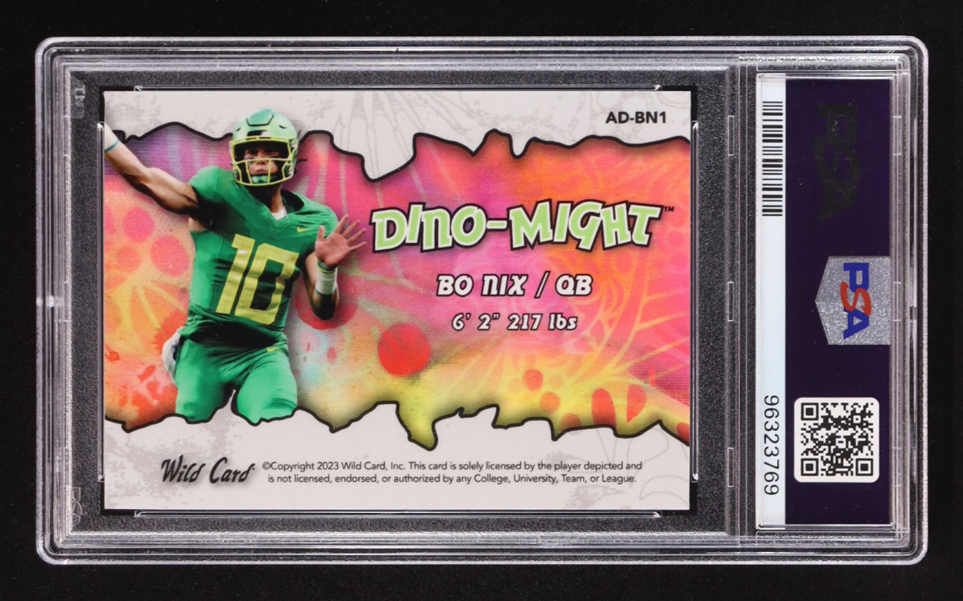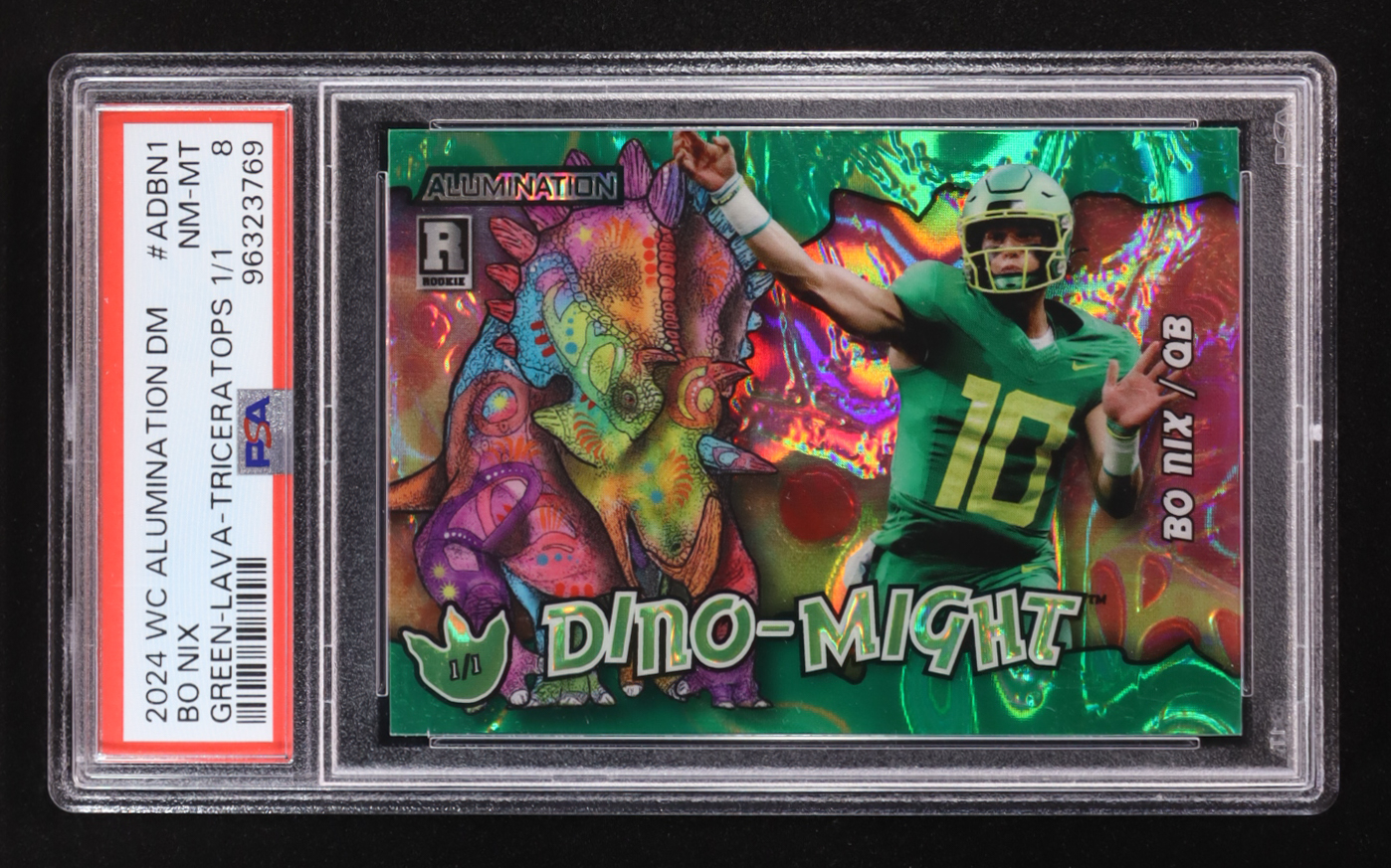 Bo Nix 2024 Wild Card Alumination Dino-Might Green Lava Triceratops #603 #1/1 (PSA 8)