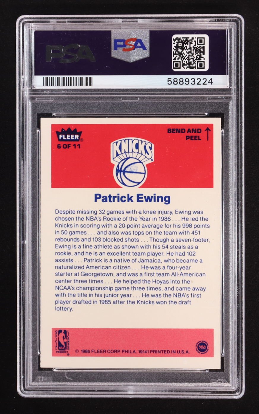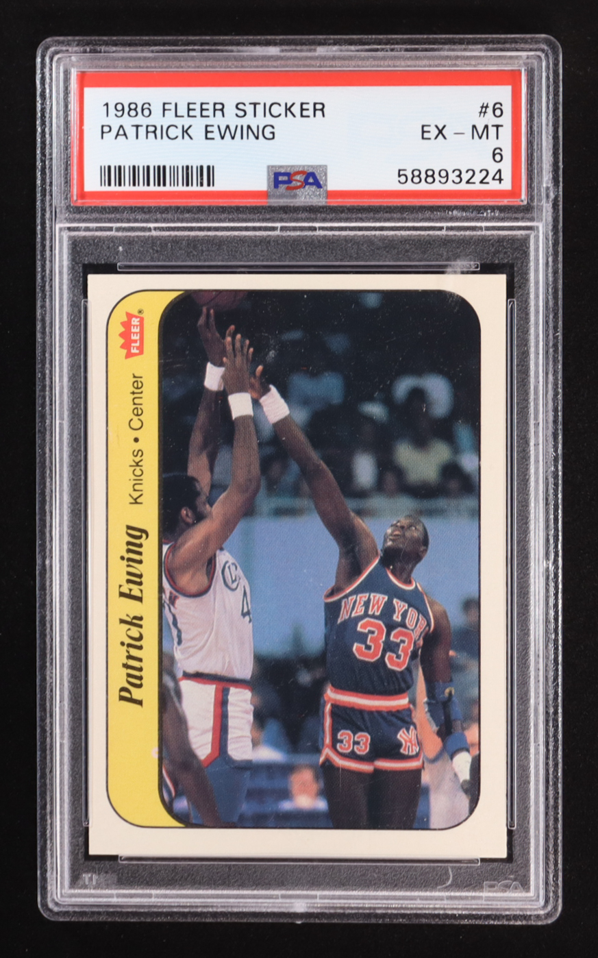 Patrick Ewing 1986 Fleer Sticker #6 RC (PSA 6)