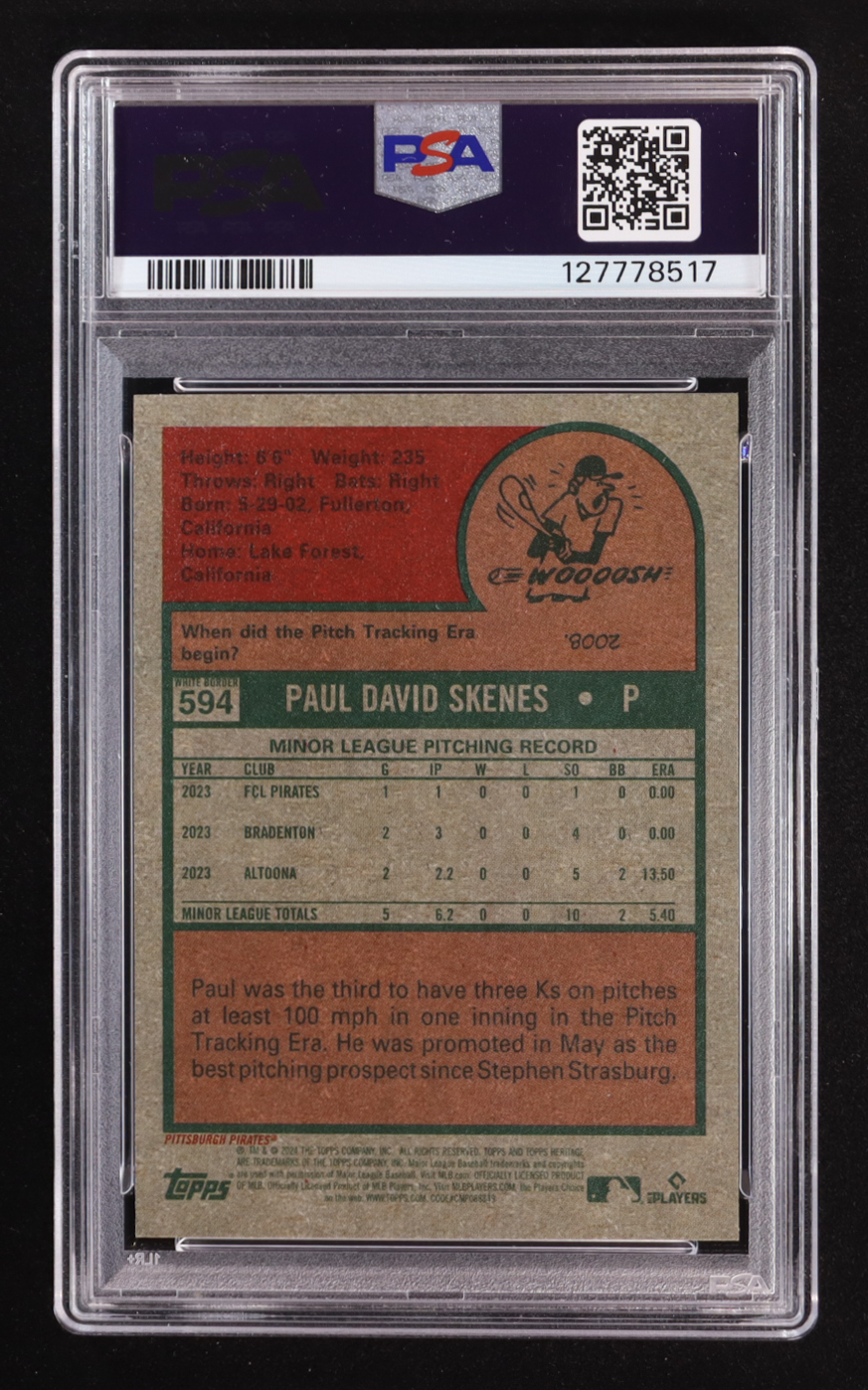 Paul Skenes 2024 Topps Heritage Dark Blue Border #594 RC (PSA 9)