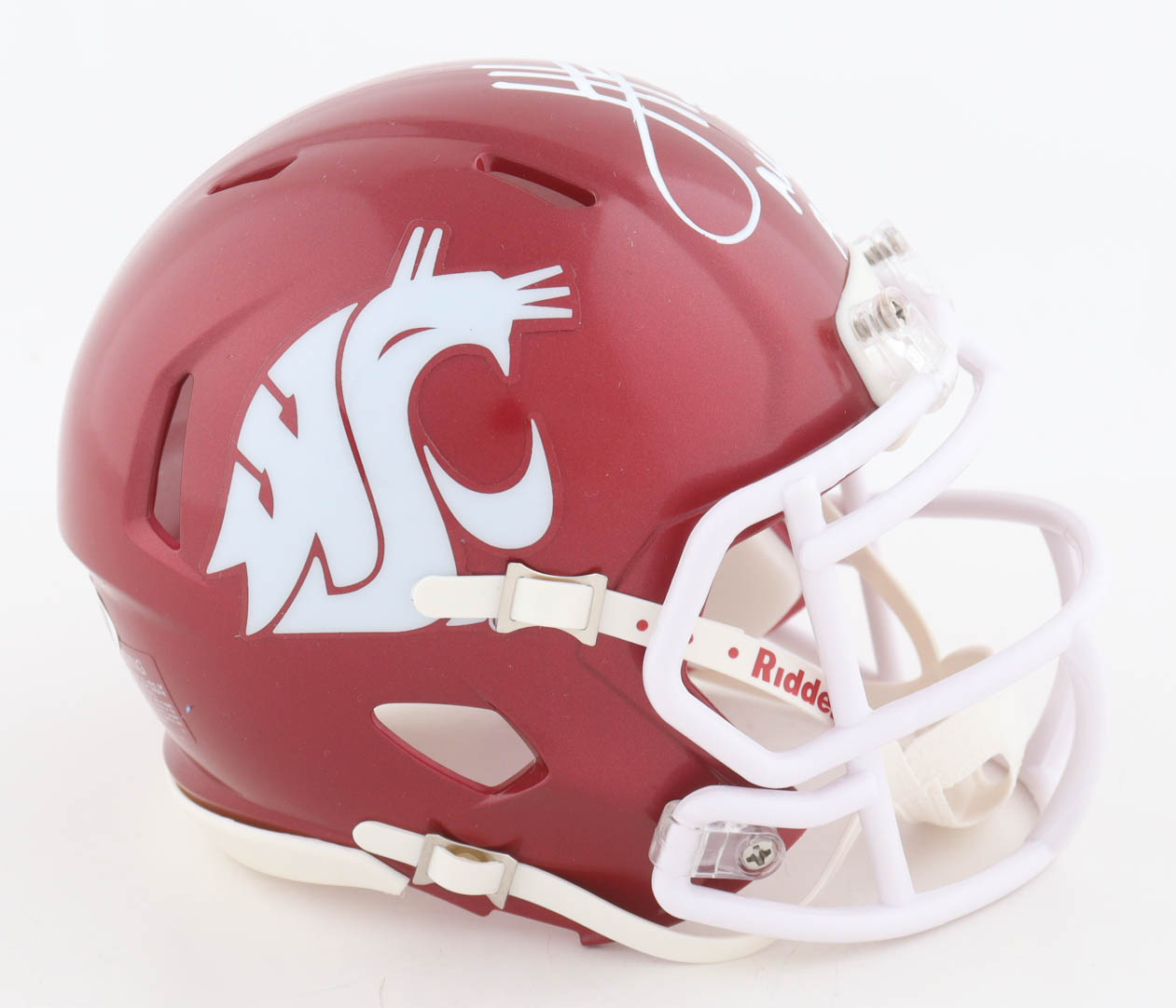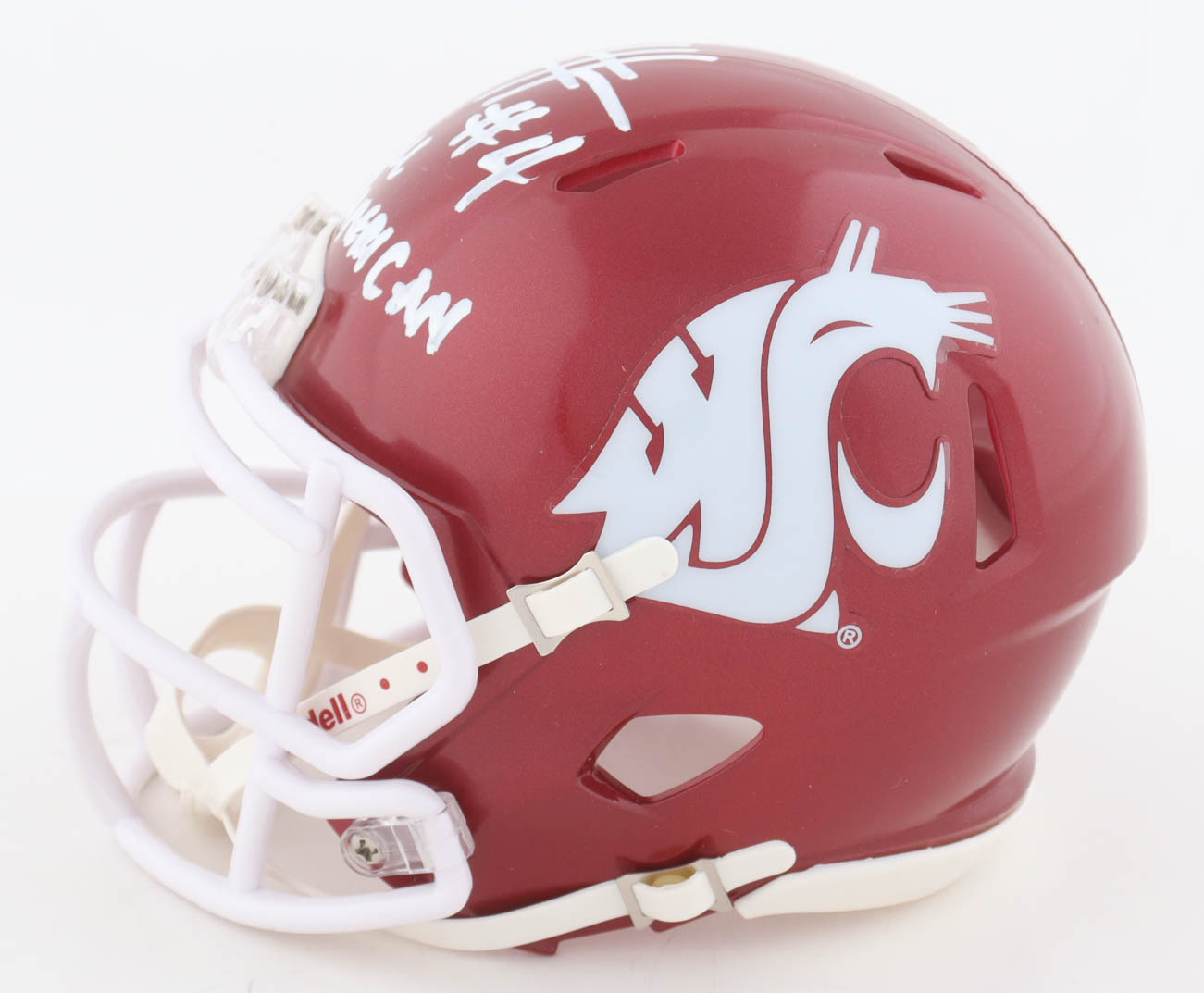 Riddell Washington State Cougars speed mini helmet has been hand-signed and inscribed by Jason Hanson.