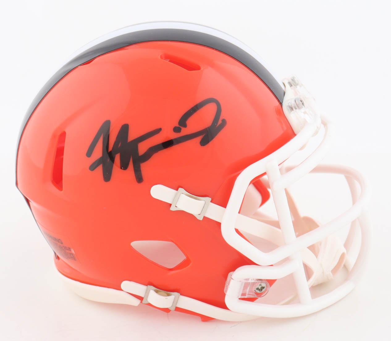 Riddell Cleveland Browns Speed mini helmet. Hand-signed by Harold Fannin.