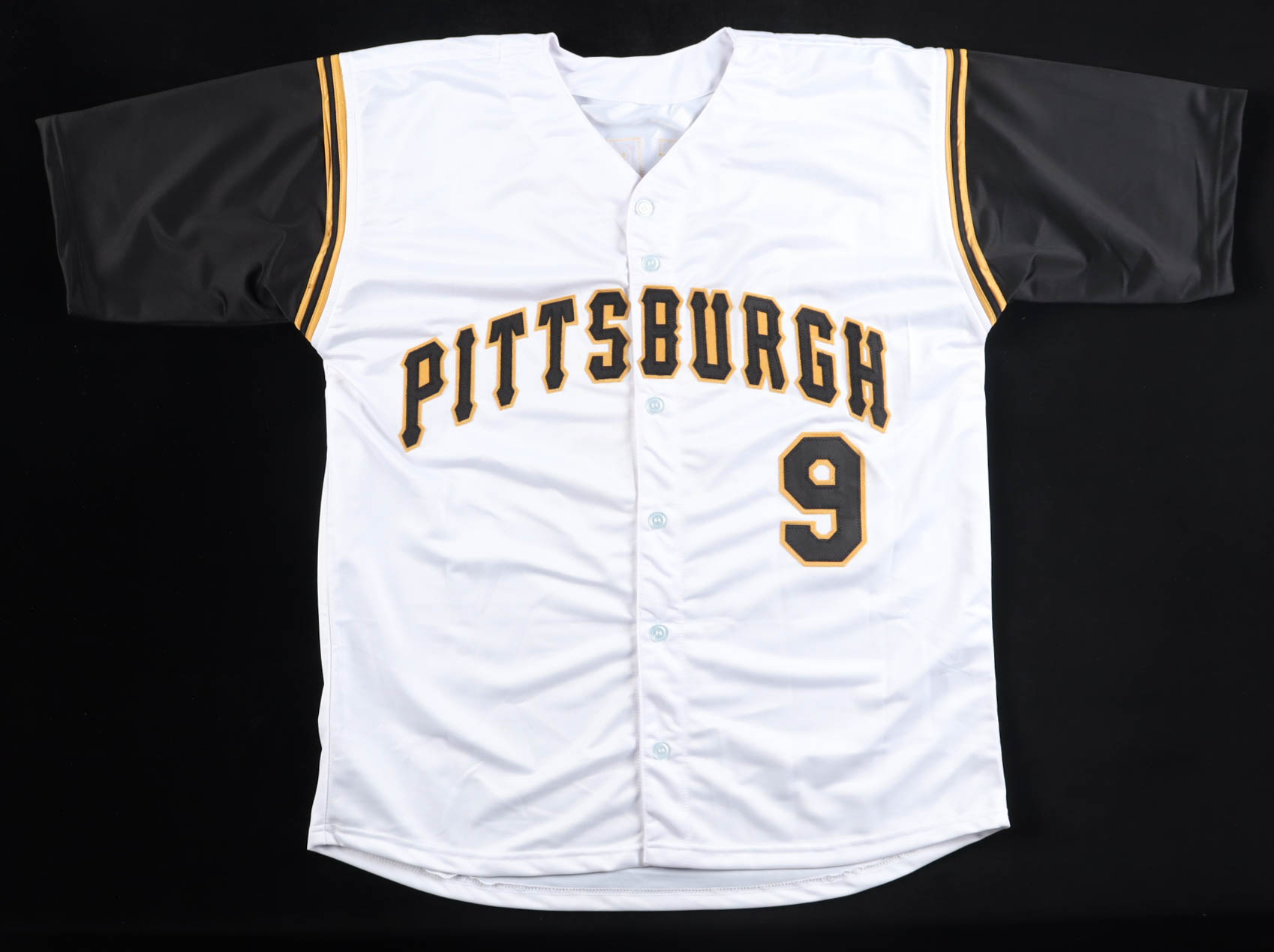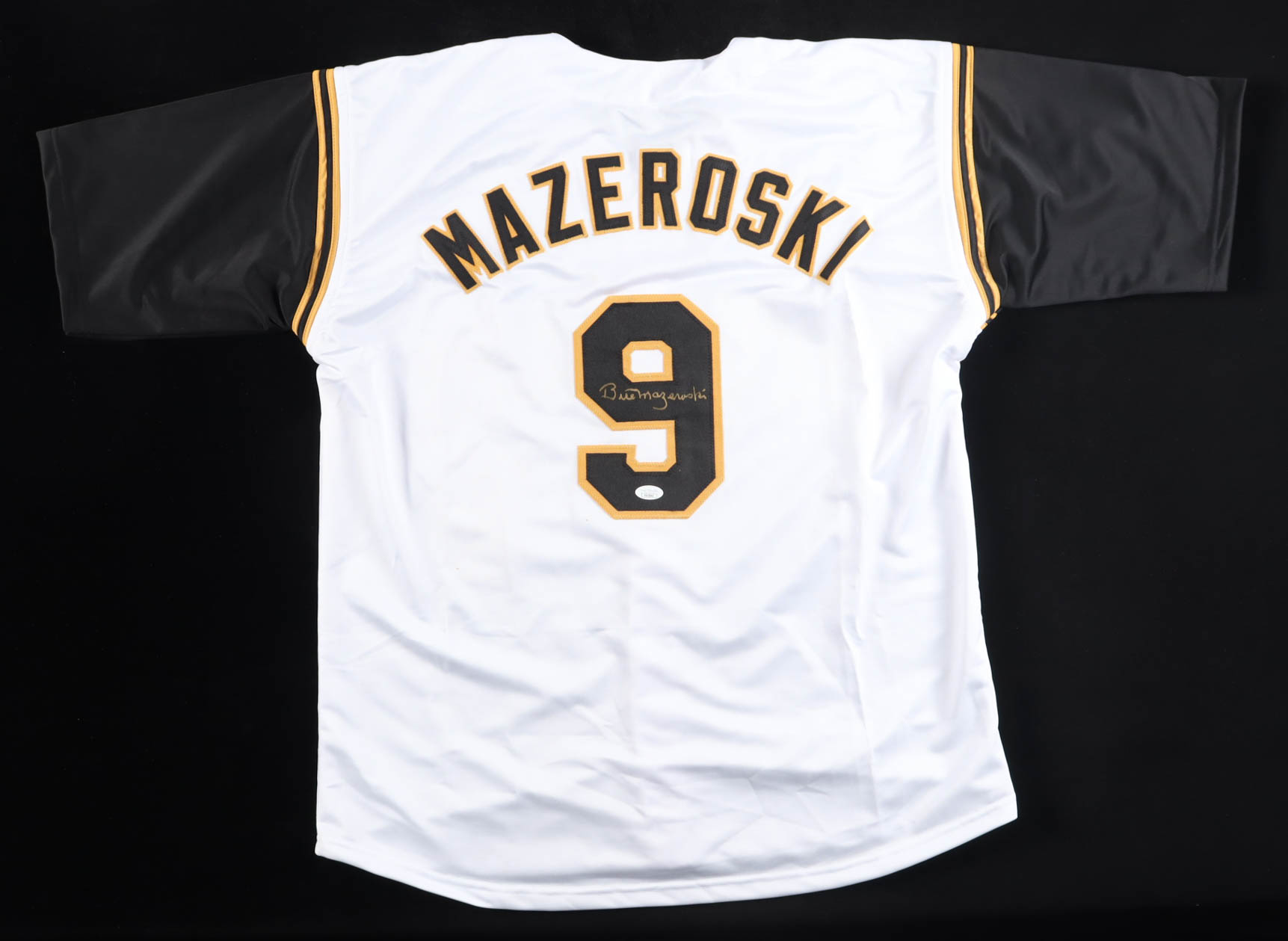 Custom jersey with everything sewn on, size XL. Hand-signed by Bill Mazeroski (HOF).