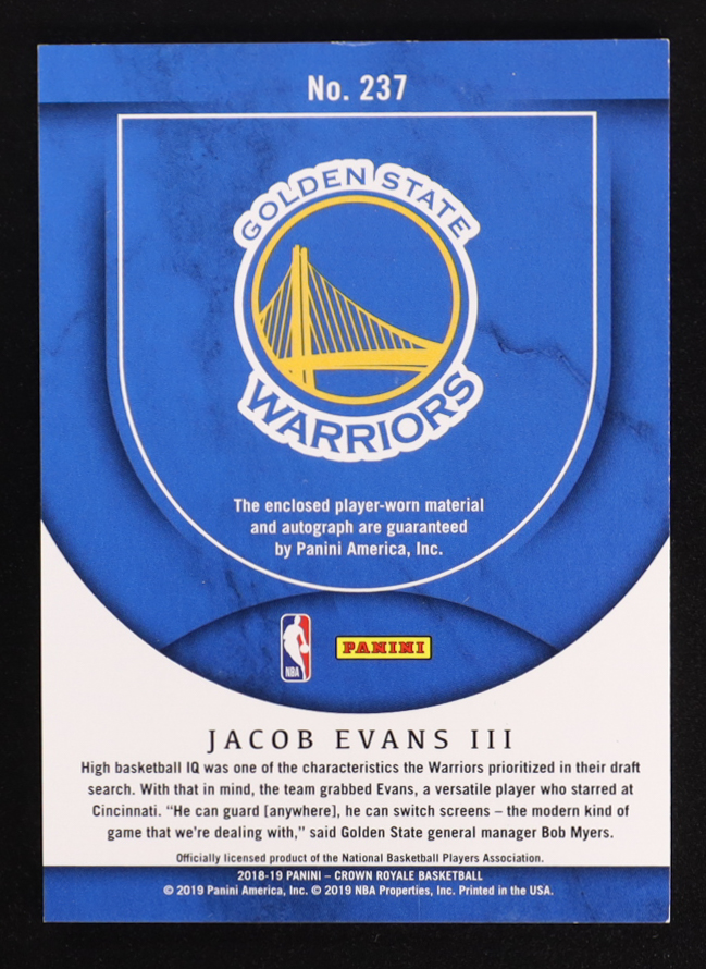 Jacob Evans III 218-19 Crown Royale Silhouettes Material Autographs #237 #87/199