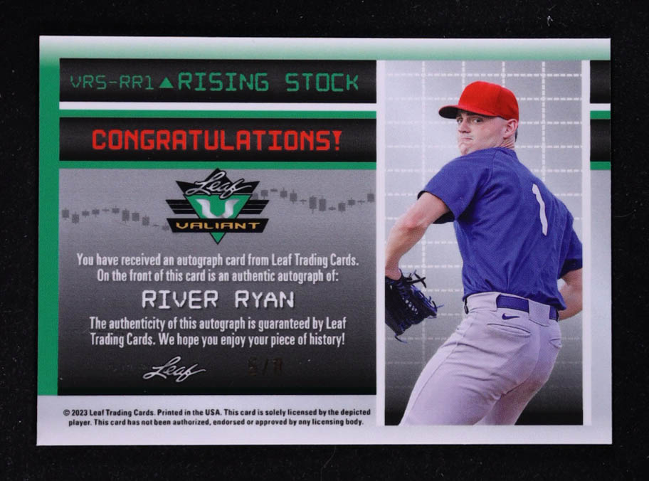 River Ryan 2023 Leaf Valiant Rising Stock Blue Holo Signatures #VRSRR1 #5/8 RC