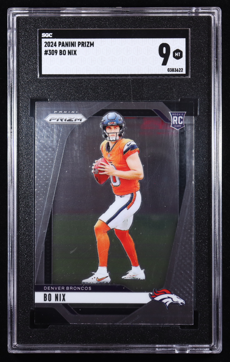 Card has been graded SGC 9. Please see photos for more details regarding the condition of the card (Denver Broncos). Note that the encapsulation has a crack on the back top left corner.