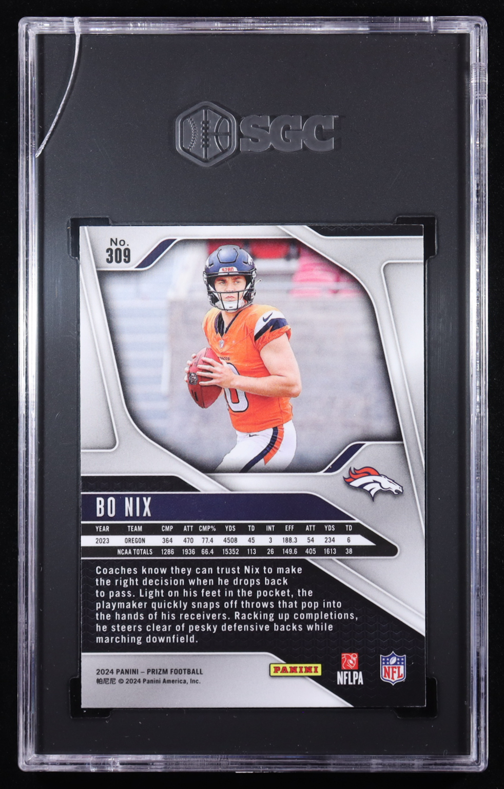 Bo Nix 2024 Panini Prizm #309 RC (SGC 9)