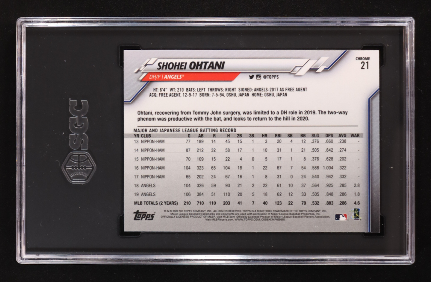Shohei Ohtani 2020 Topps Chrome #21 (SGC 9.5)