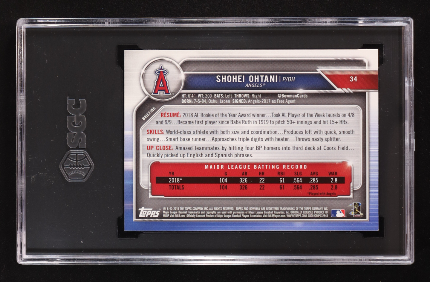 Shohei Ohtani 2019 Bowman #34 (SGC 9)