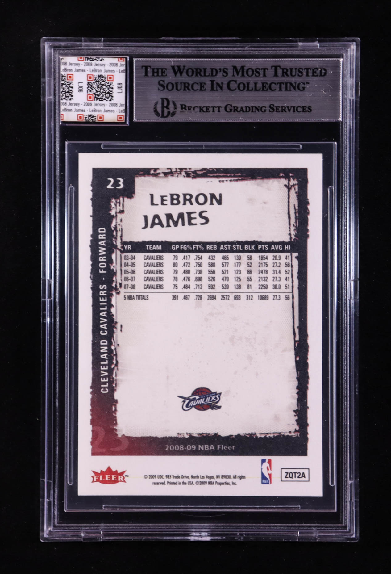 LeBron James 2008-09 Fleer #23 With Game-Used Jersey Swatch (BGS 9)