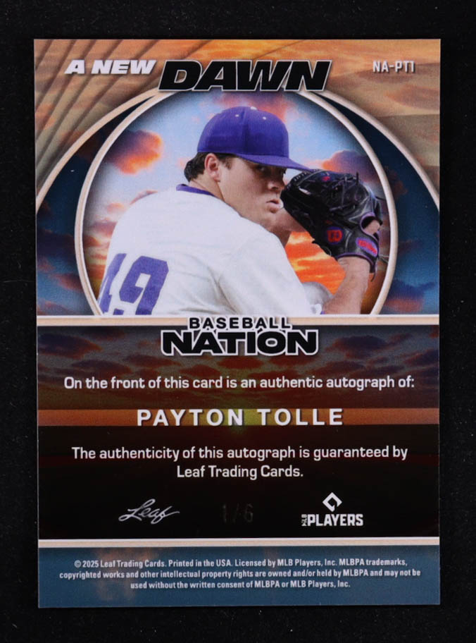 Payton Tolle 2025 Leaf Baseball Nation A New Dawn Magenta Crystal Signatures #NAPT1 #1/6 RC