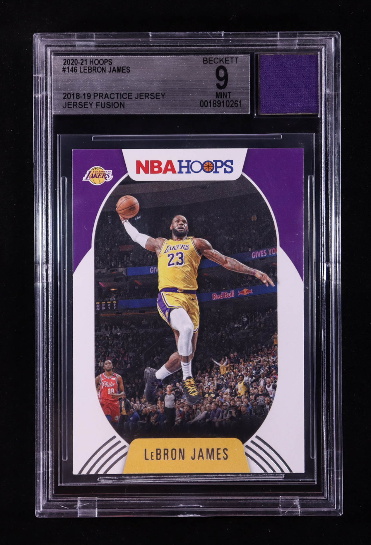LeBron James 2020-21 Hoops #146 With Practice Jersey Swatch (BGS 9)