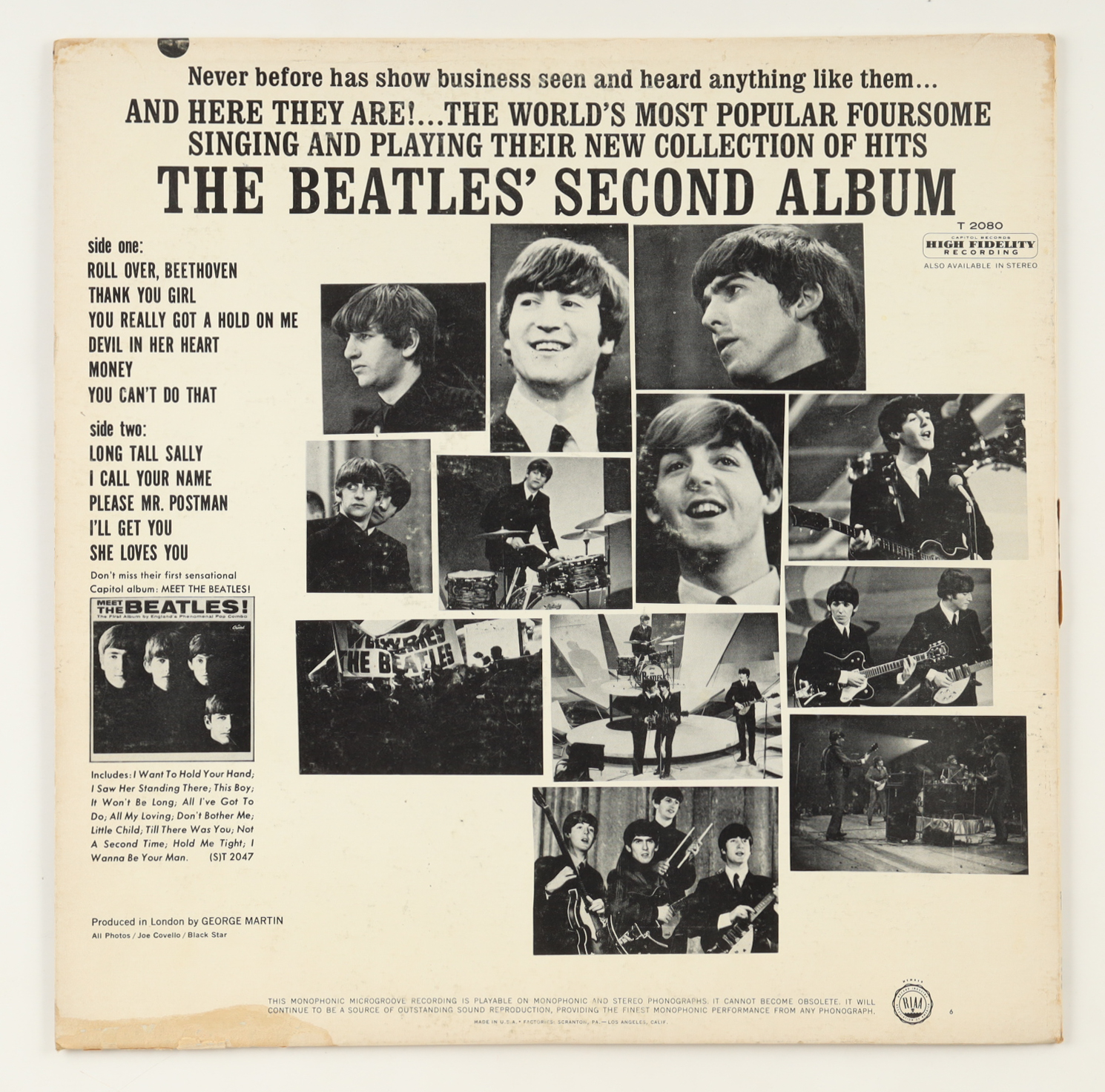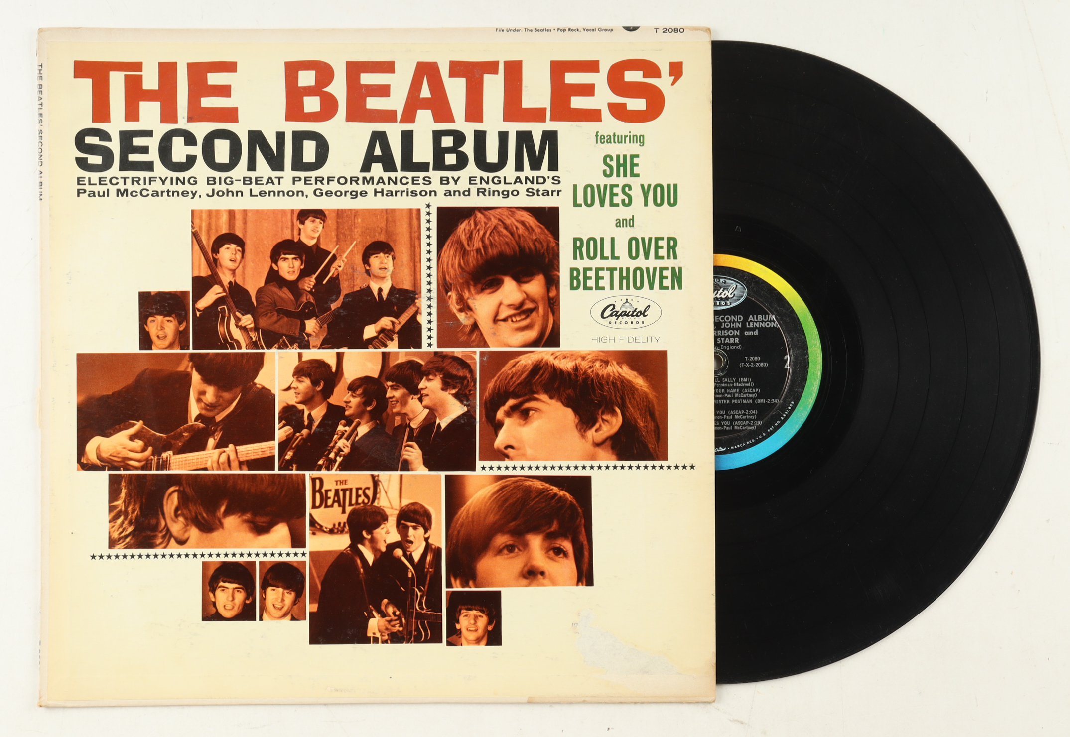 The Beatles "Second Album" vintage vinyl LP album jacket. Please see photos for more details regarding the item as the record is included in the listing as shown above and the original sleeve shows signs of natural staining and damage. Note that the item is unsigned.