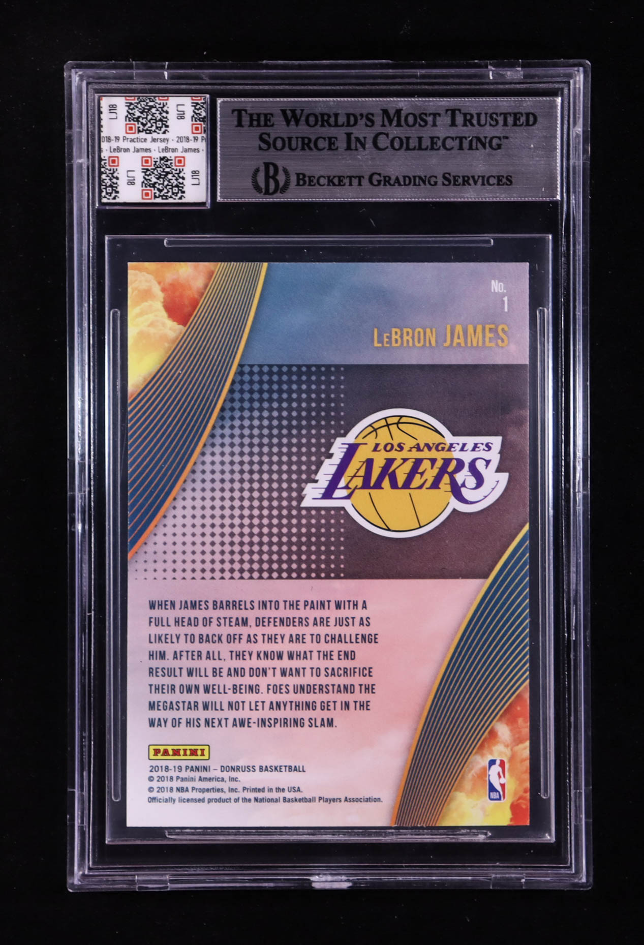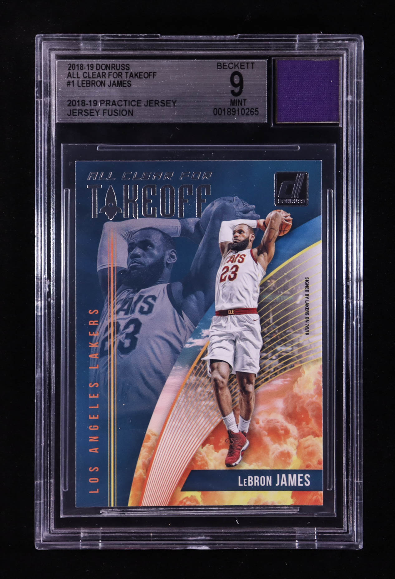 LeBron James 2018-19 Donruss All Clear for Takeoff #1 With Practice Jersey Swatch (BGS 9)