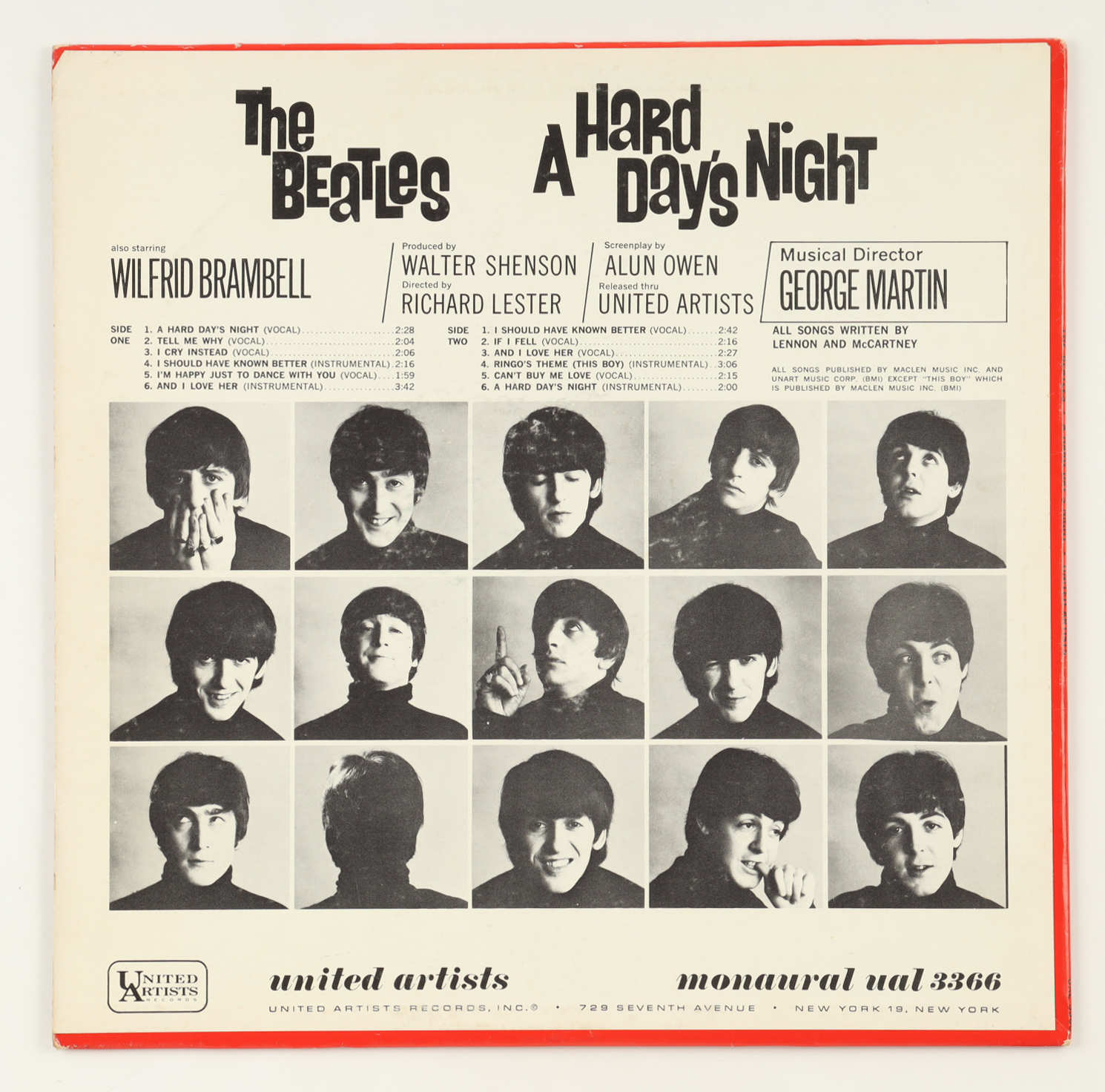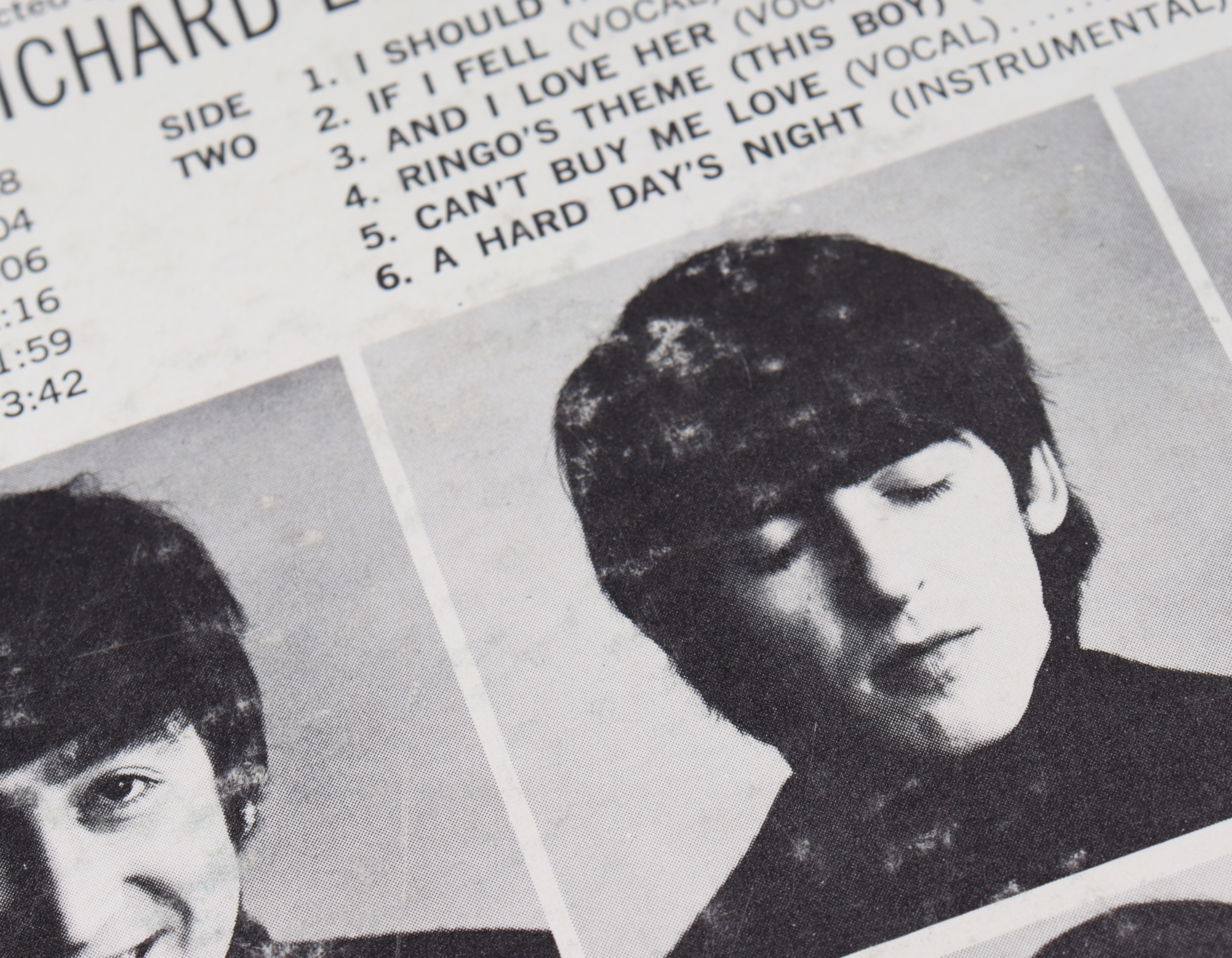 The Beatles "A Hard Days Night" vintage vinyl LP album jacket. Please see photos for more details regarding the item as the record is included in the listing as shown above and the original sleeve shows signs of natural staining and damage. Note that the item is unsigned.