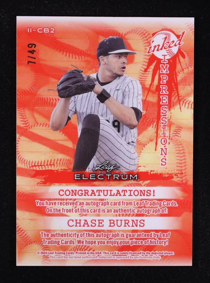 Chase Burns 2024 Leaf Electrum Inked Impressions Bronze Signatures #IICB2 #7/49 RC
