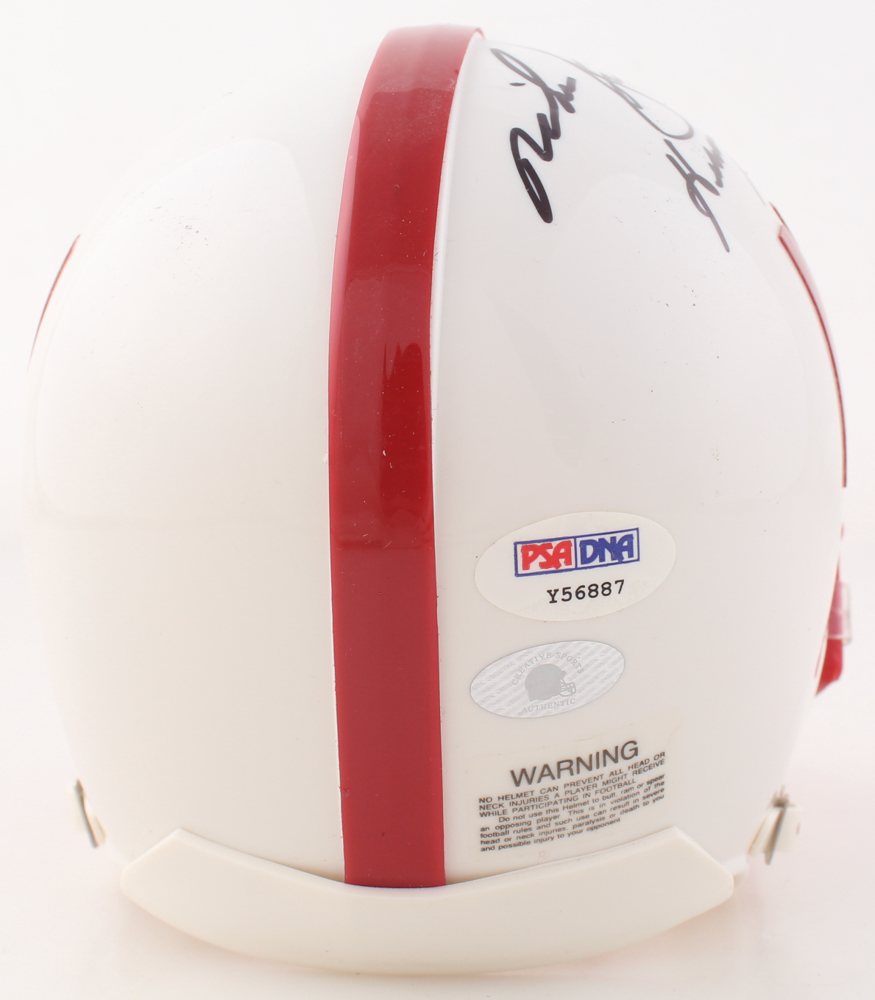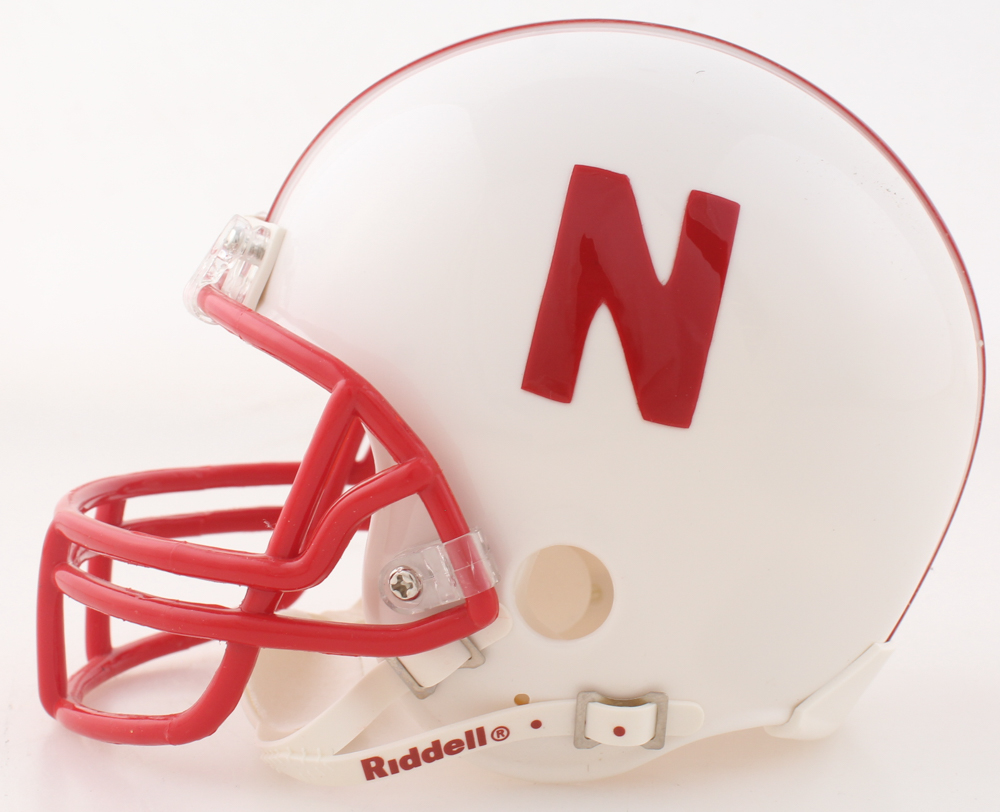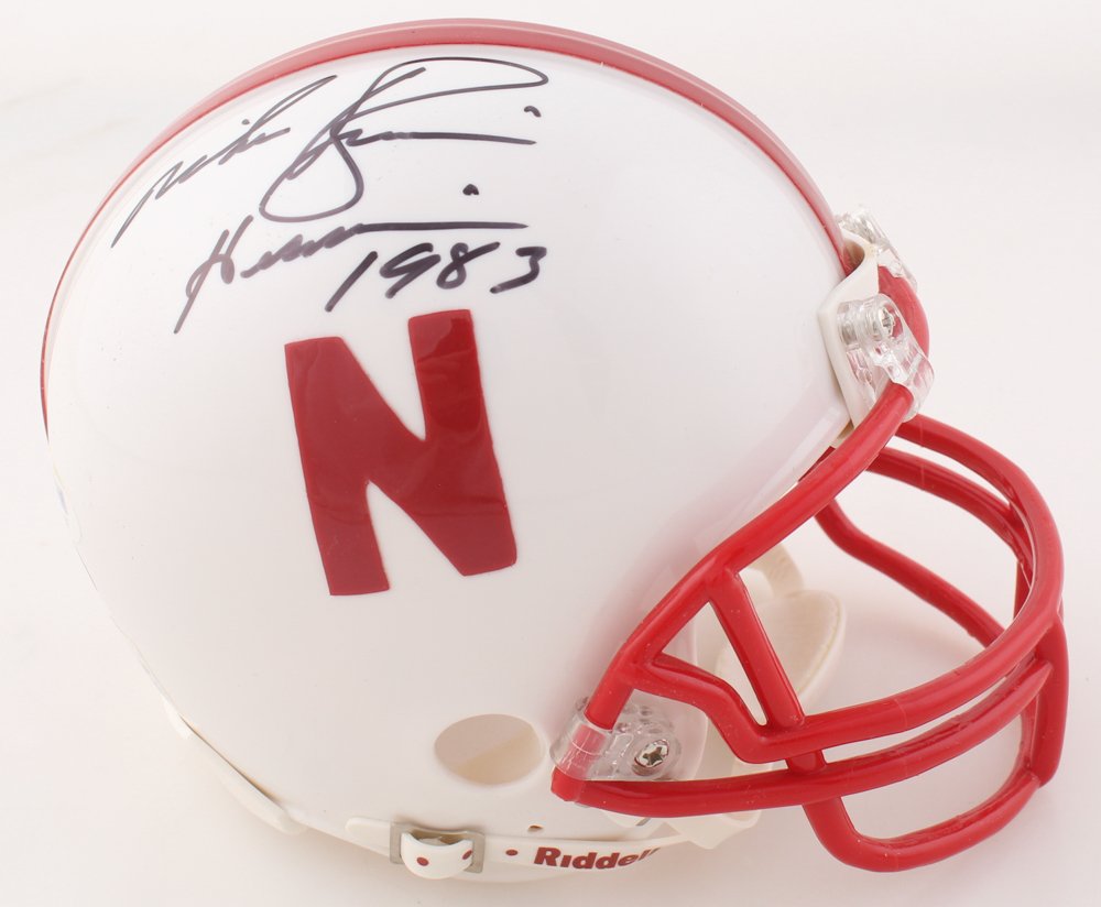 Riddell Nebraska Cornhuskers Mini helmet has been hand-signed and inscribed by Mike Rozier.