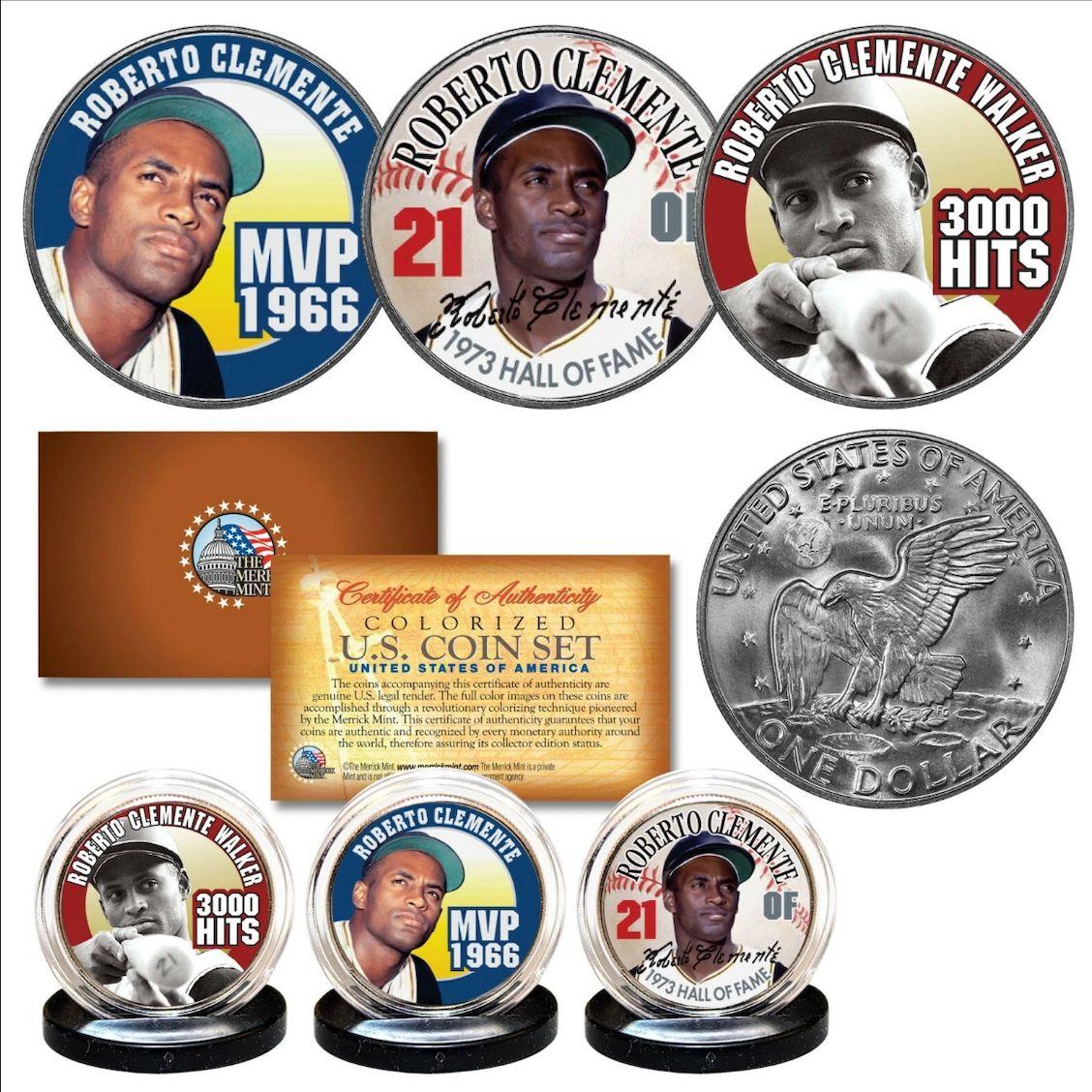 Roberto Clemente Pirates Set of (3) Colorized Eisenhower Dollar Coins