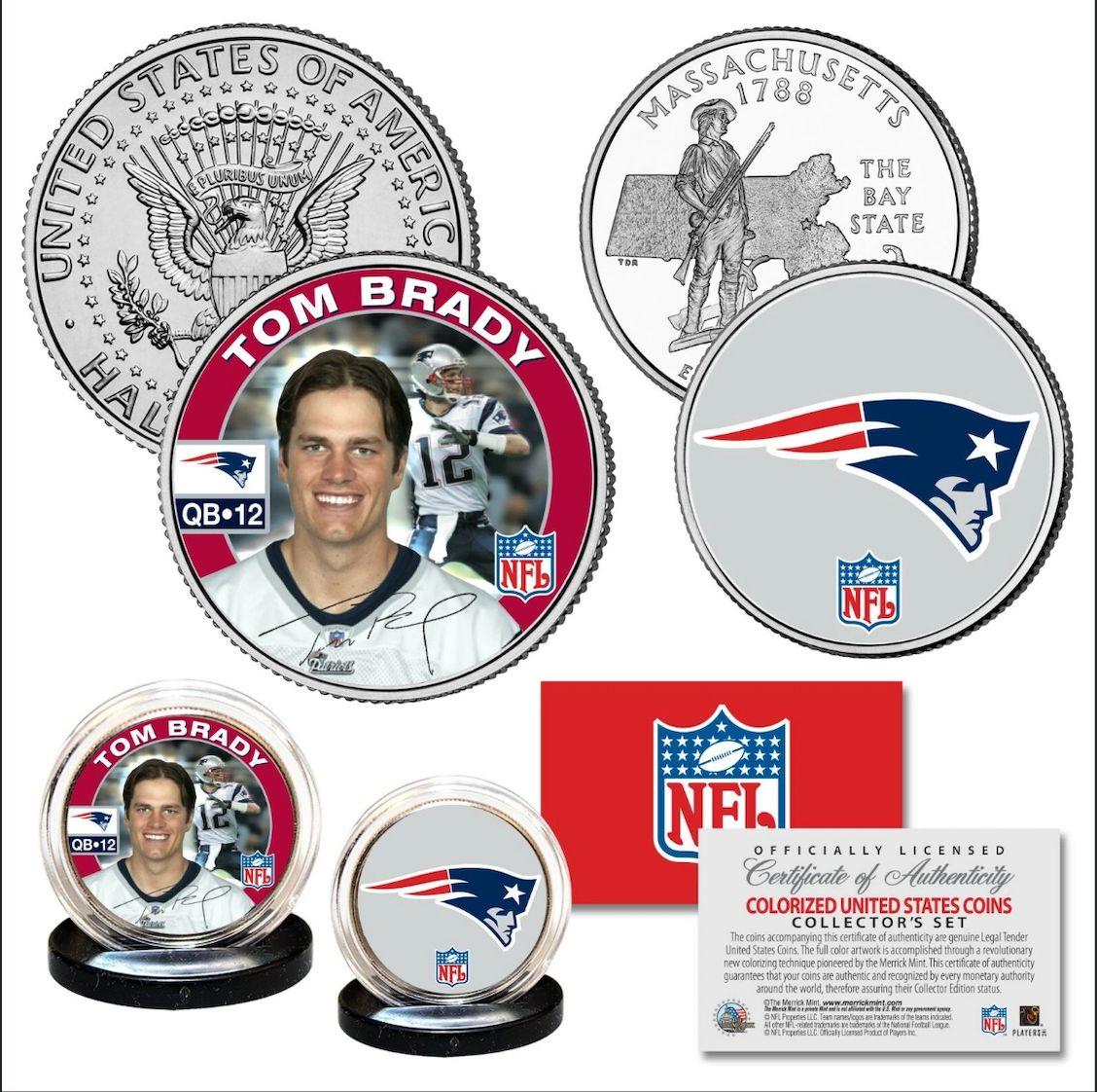 Tom Brady Patriots Set of (2) Quarter & JFK Half Dollar Coins