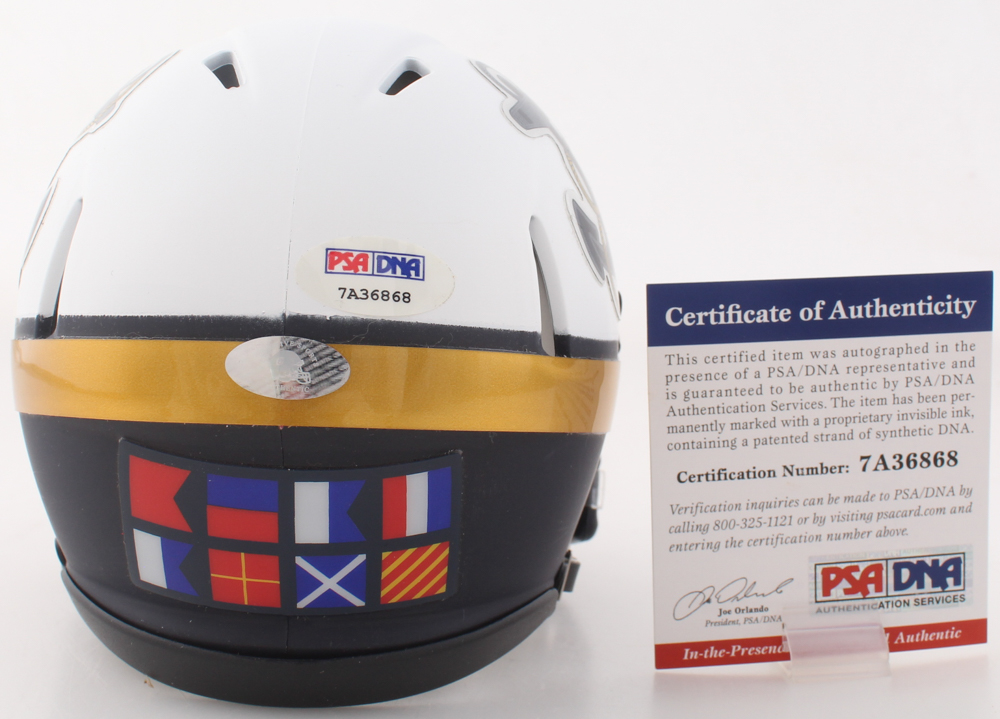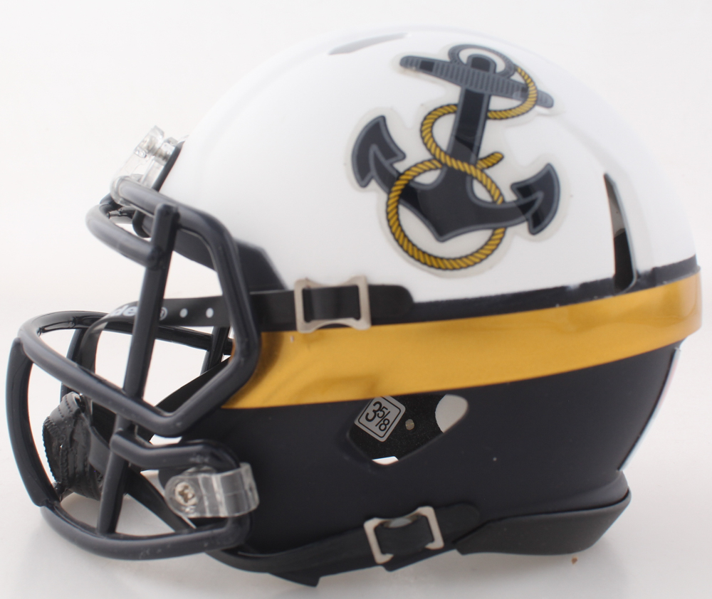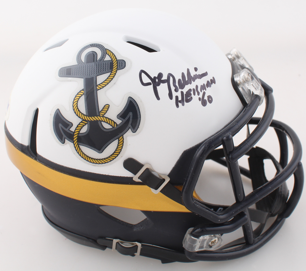 Riddell Navy Midshipmen mini helmet. Hand-signed and inscribed by Joe Bellino.
