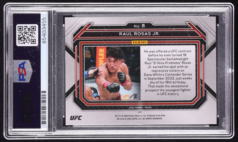 Raul Rosas Jr. Signed 2023 Panini Prizm UFC #8 RC (PSA | Auto 10)