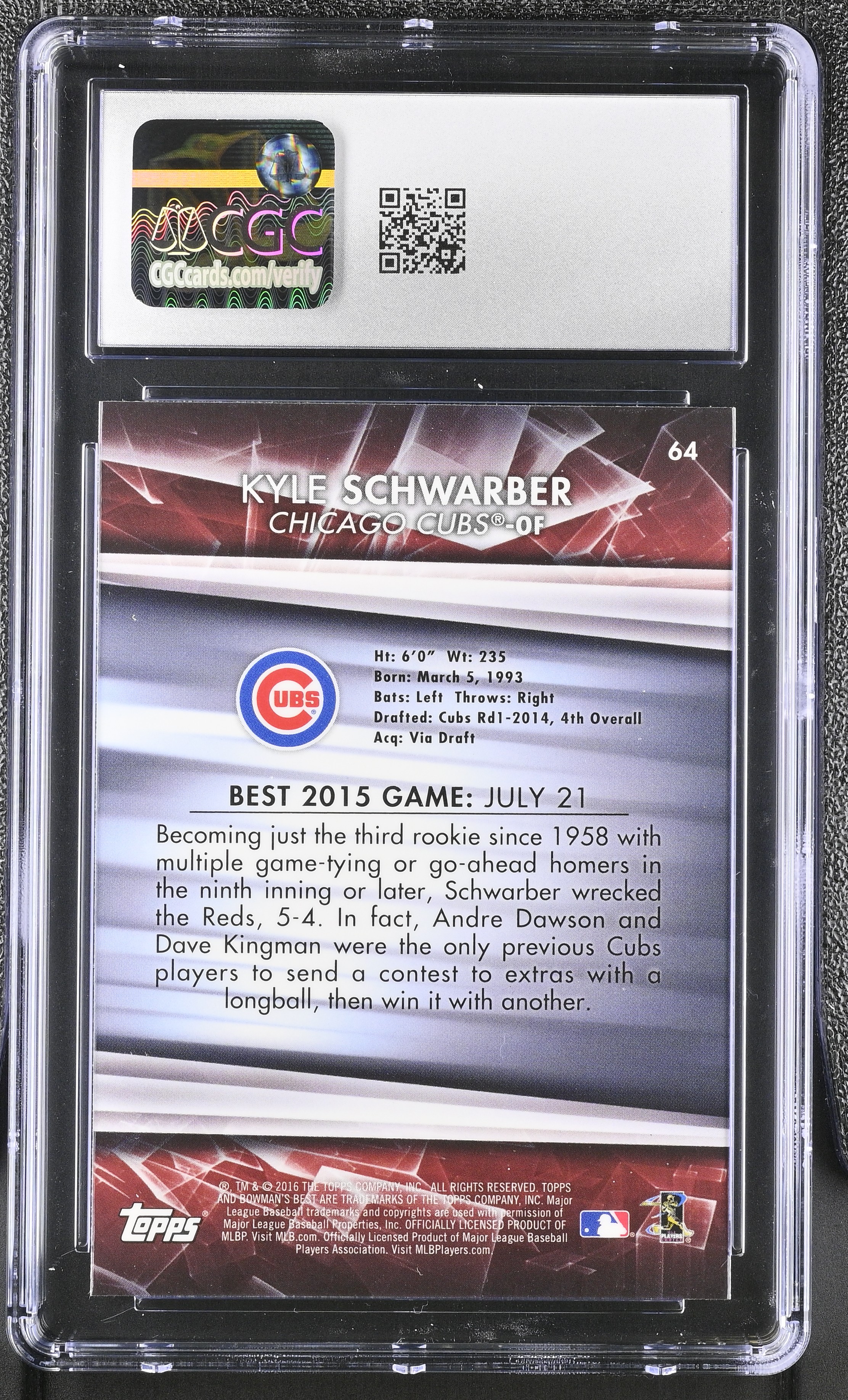 Kyle Schwarber 2016 Bowman's Best #64 RC (CGC 10)