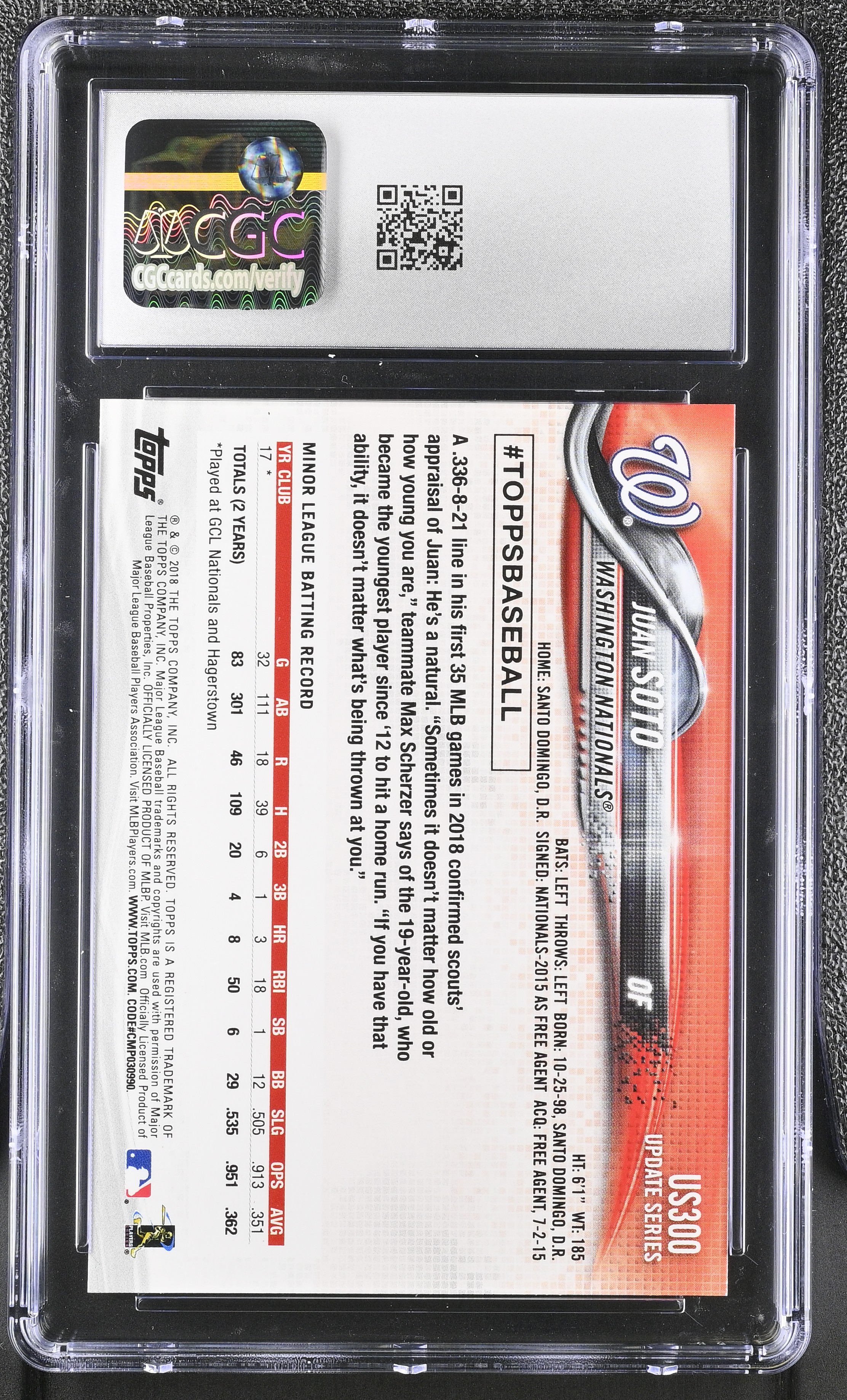 Juan Soto 2018 Topps Update #US300 RC (CGC 10)