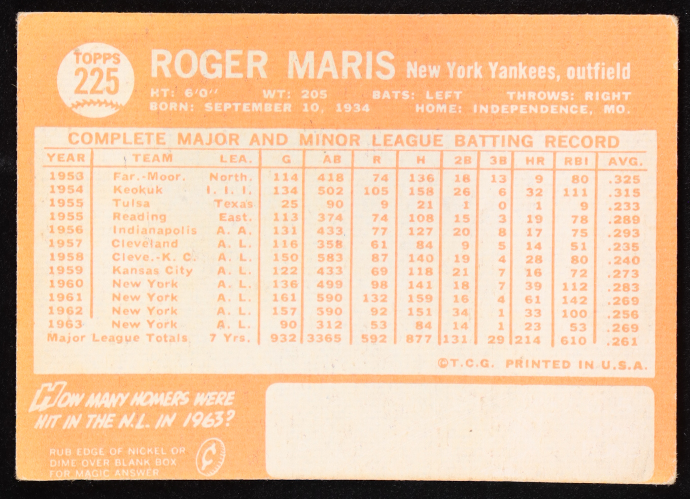 Roger Maris 1964 Topps #225